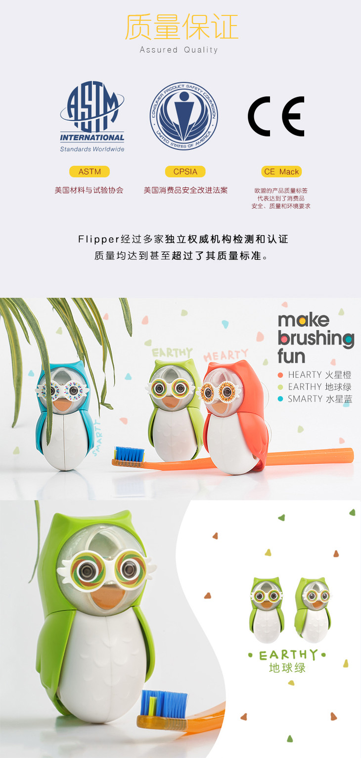 马来西亚进口牙刷架Flipper强力吸盘动物猫头鹰牙刷架 防虫防尘牙刷架 带沙漏