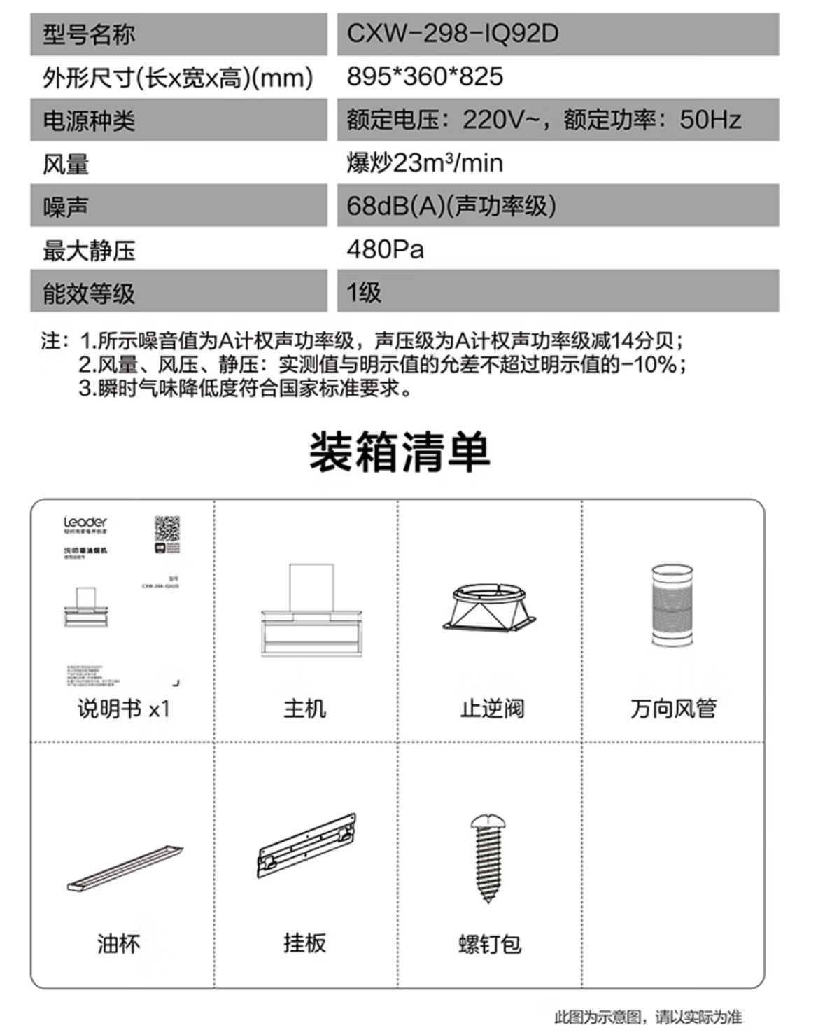 统帅(Leader)烟机 CXW-298-IQ92D 海尔出品