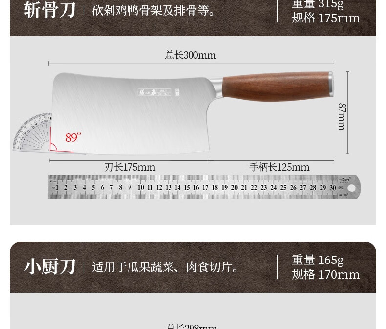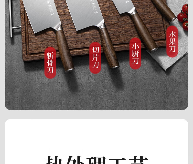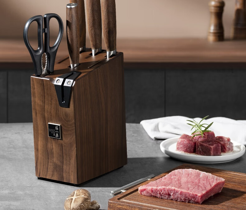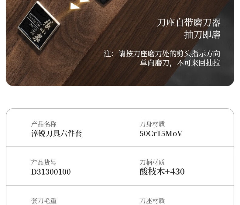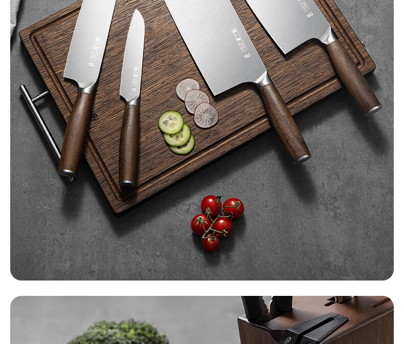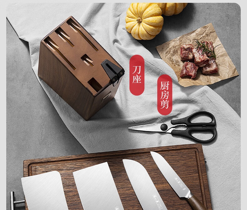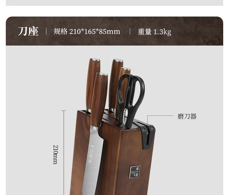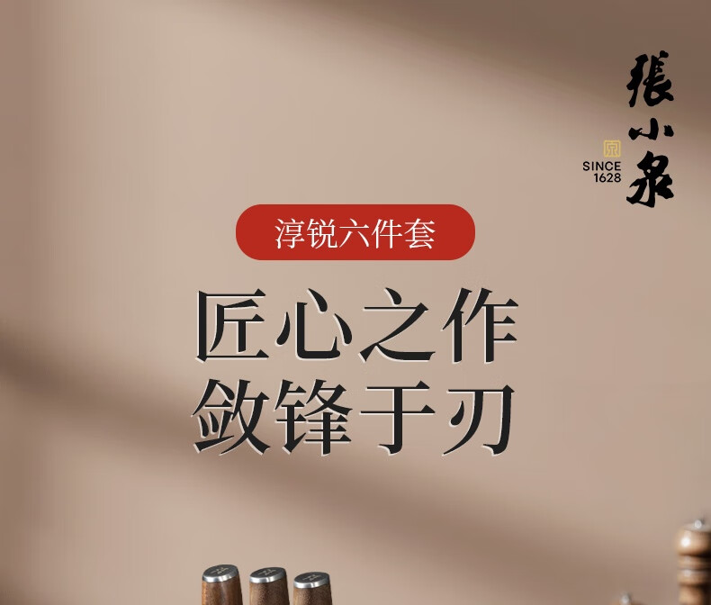 张小泉 淳锐六件刀具套装 套刀 菜刀斩骨刀多用刀水果刀磨刀器