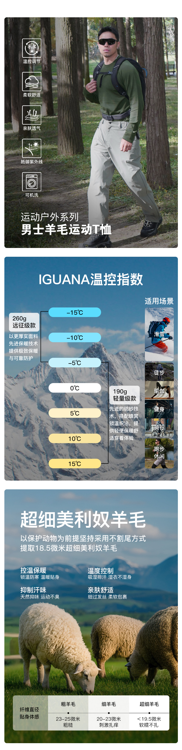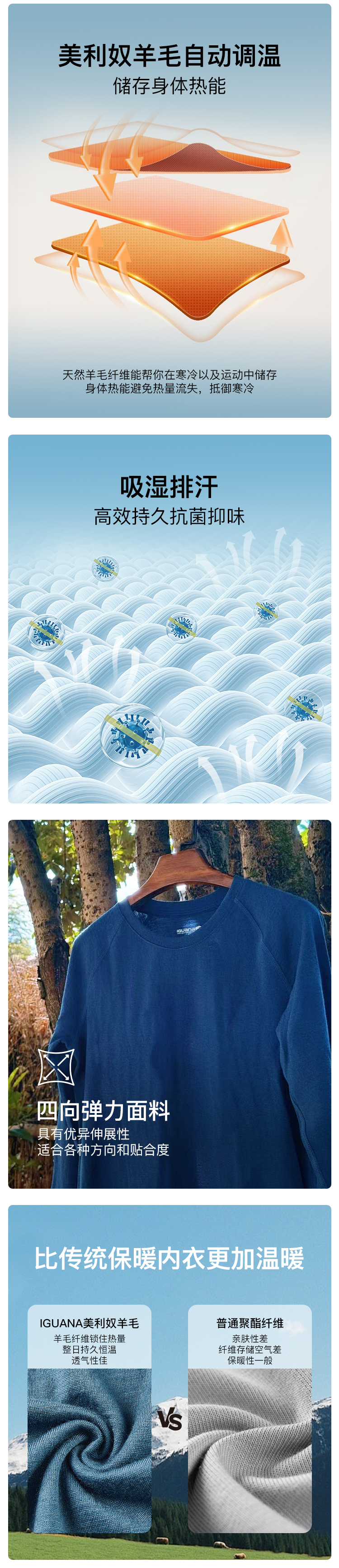 IGUANA可机洗新品男式美利奴羊毛长袖T恤速干户外徒步(内购专享)