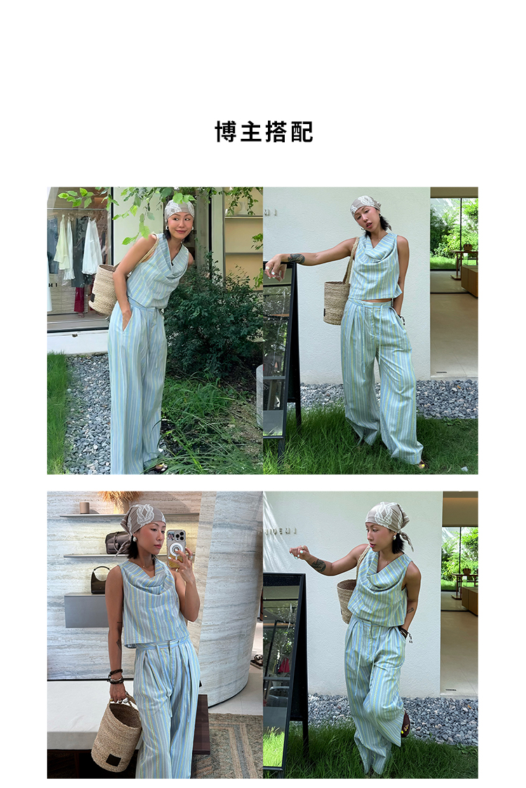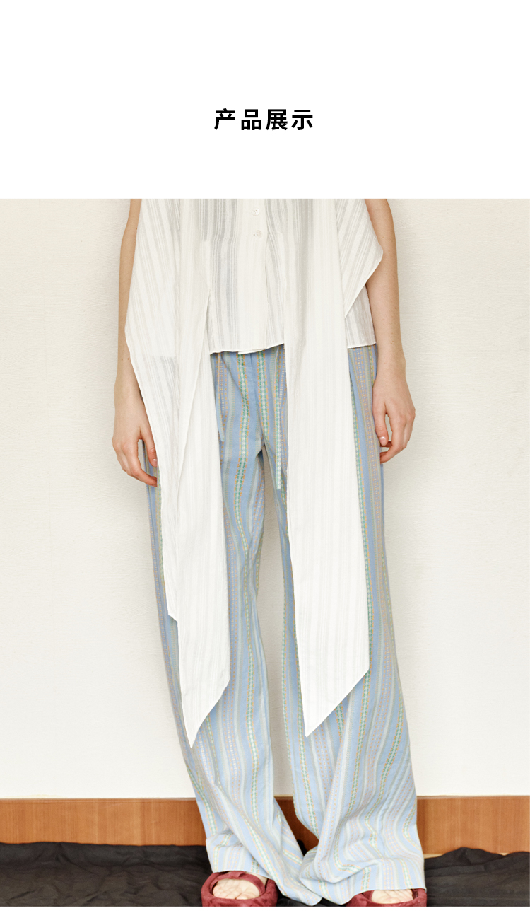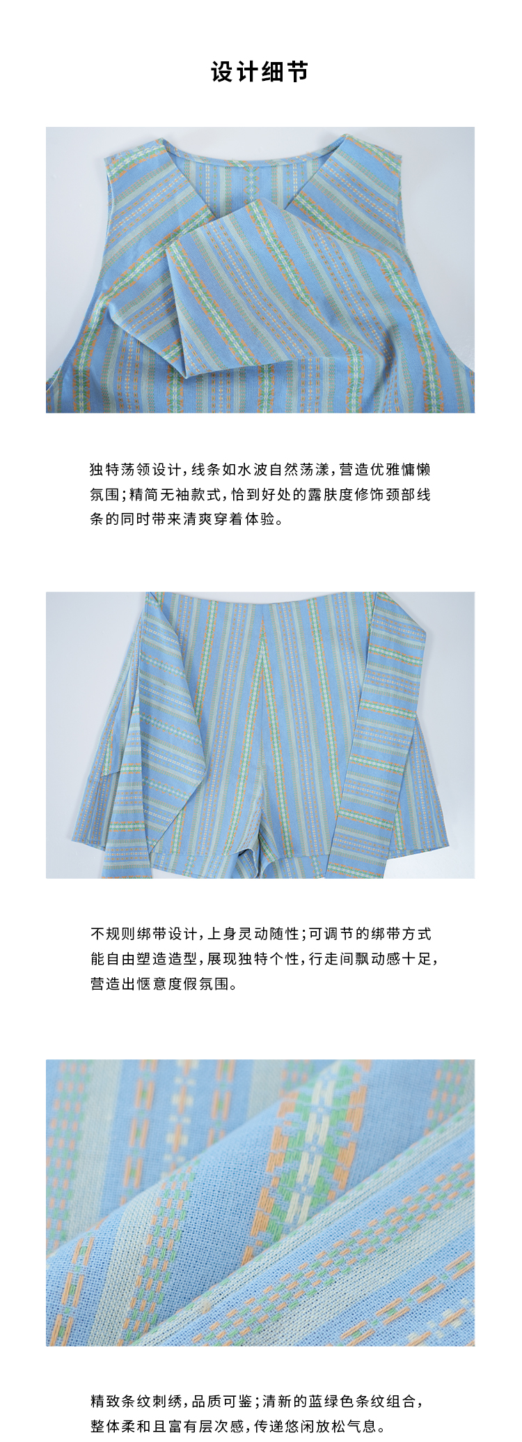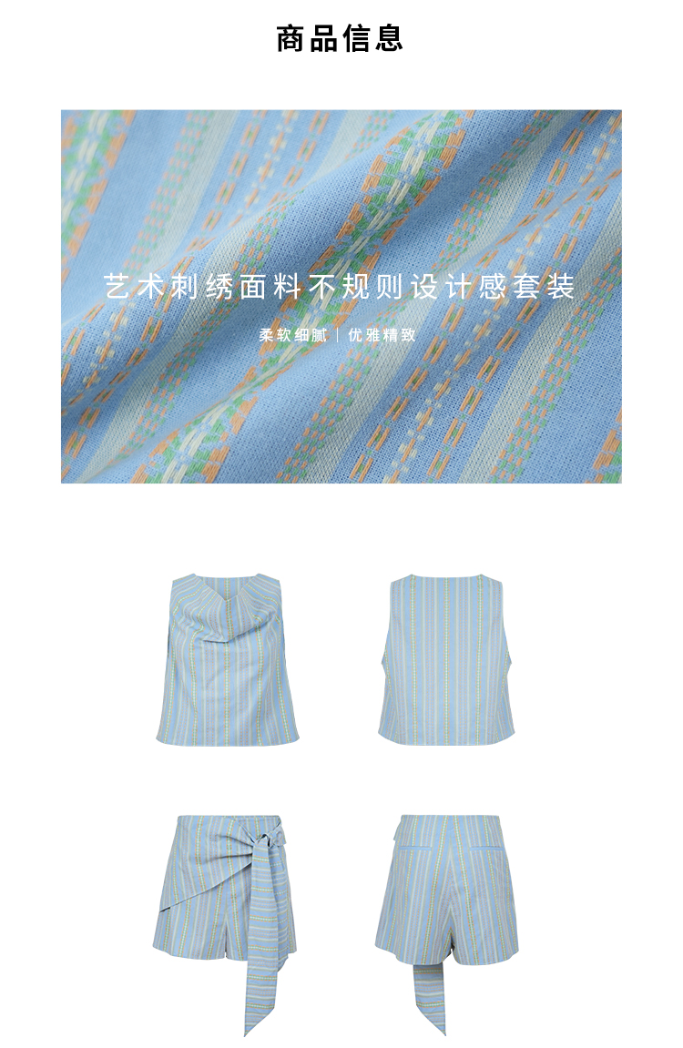 HIDEMI 度假系列艺术刺绣面料不规则荡领设计感优雅气质上衣短裤长裤套装