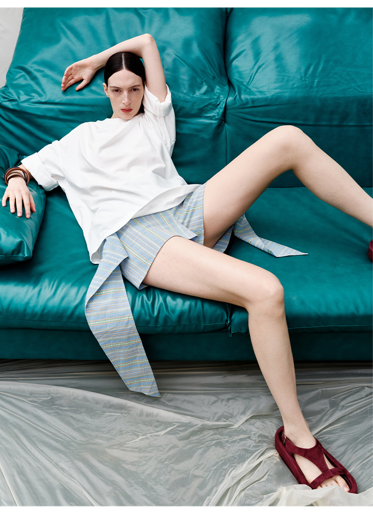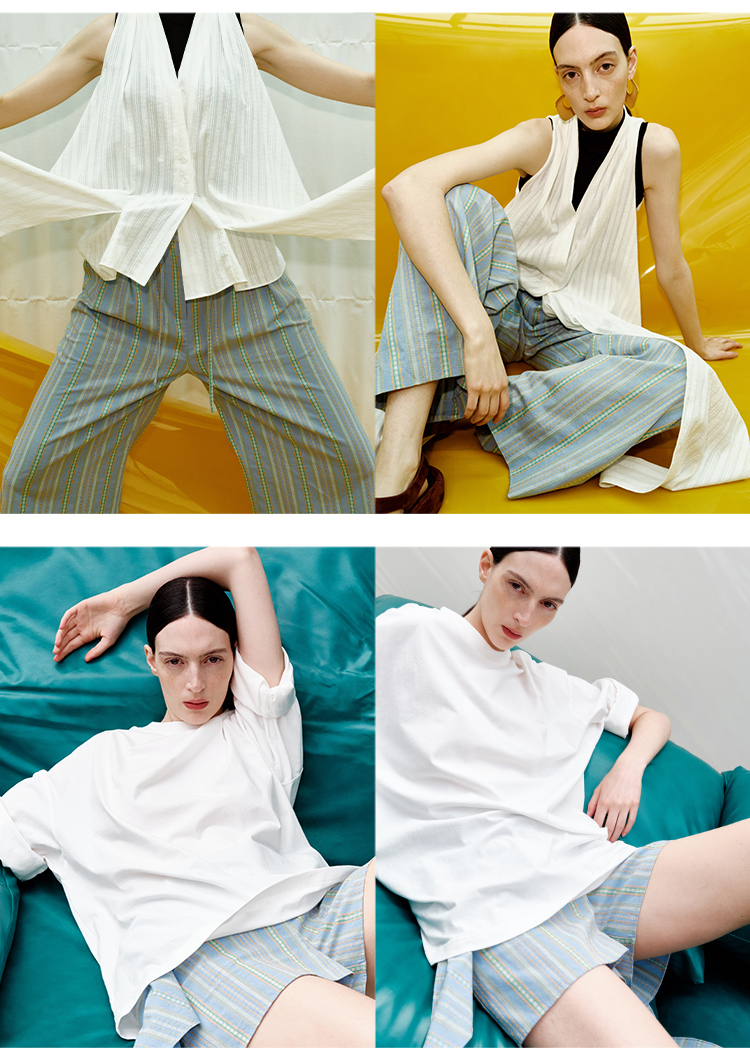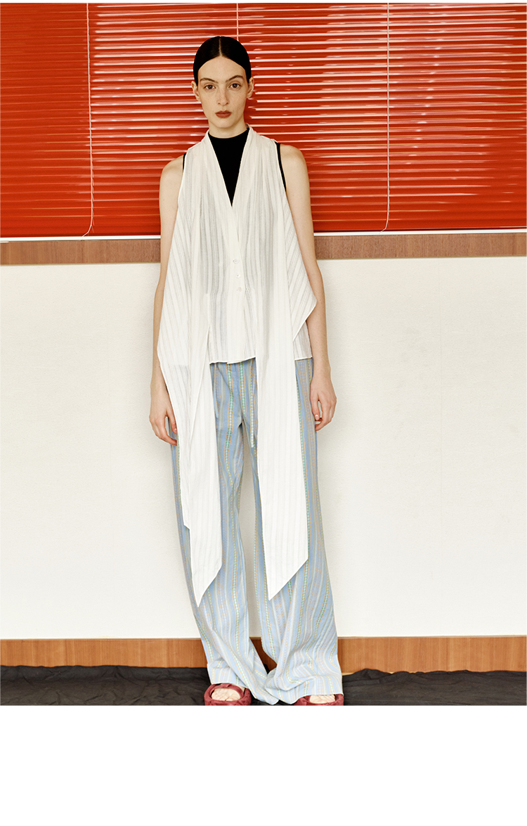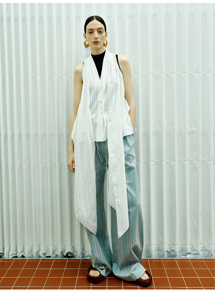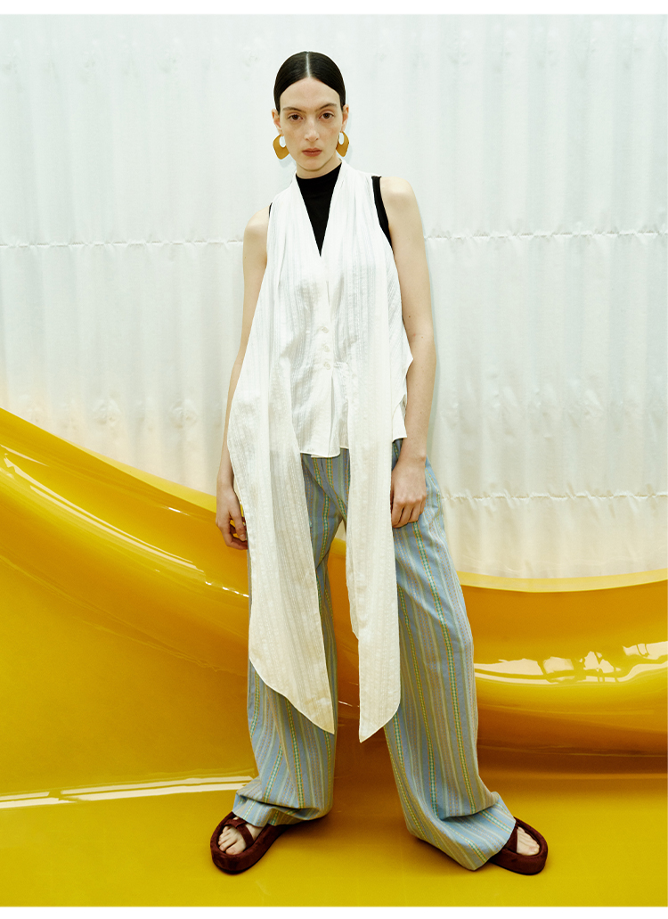 HIDEMI 度假系列艺术刺绣面料不规则荡领设计感优雅气质上衣短裤长裤套装
