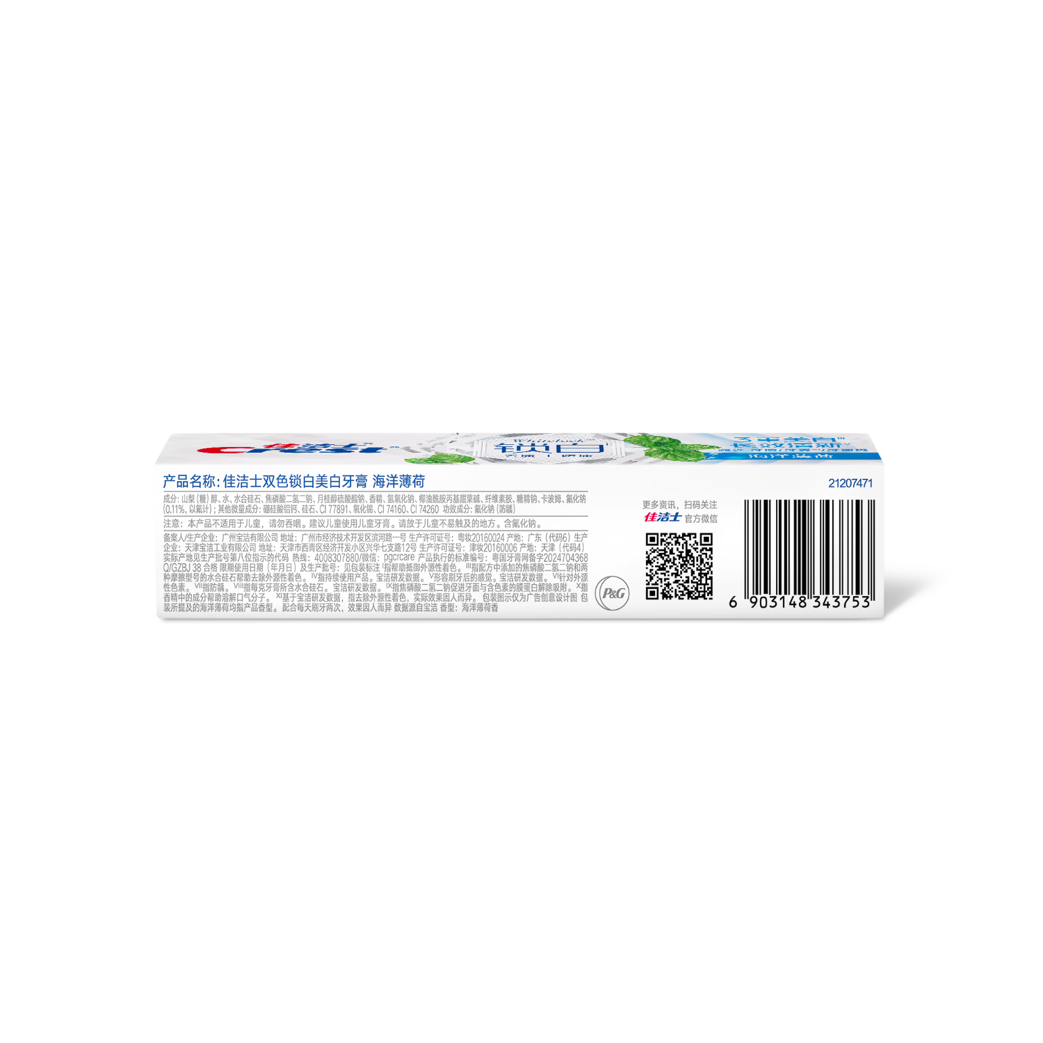 佳洁士双色锁白牙膏海洋薄荷 120g