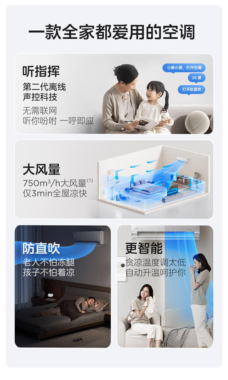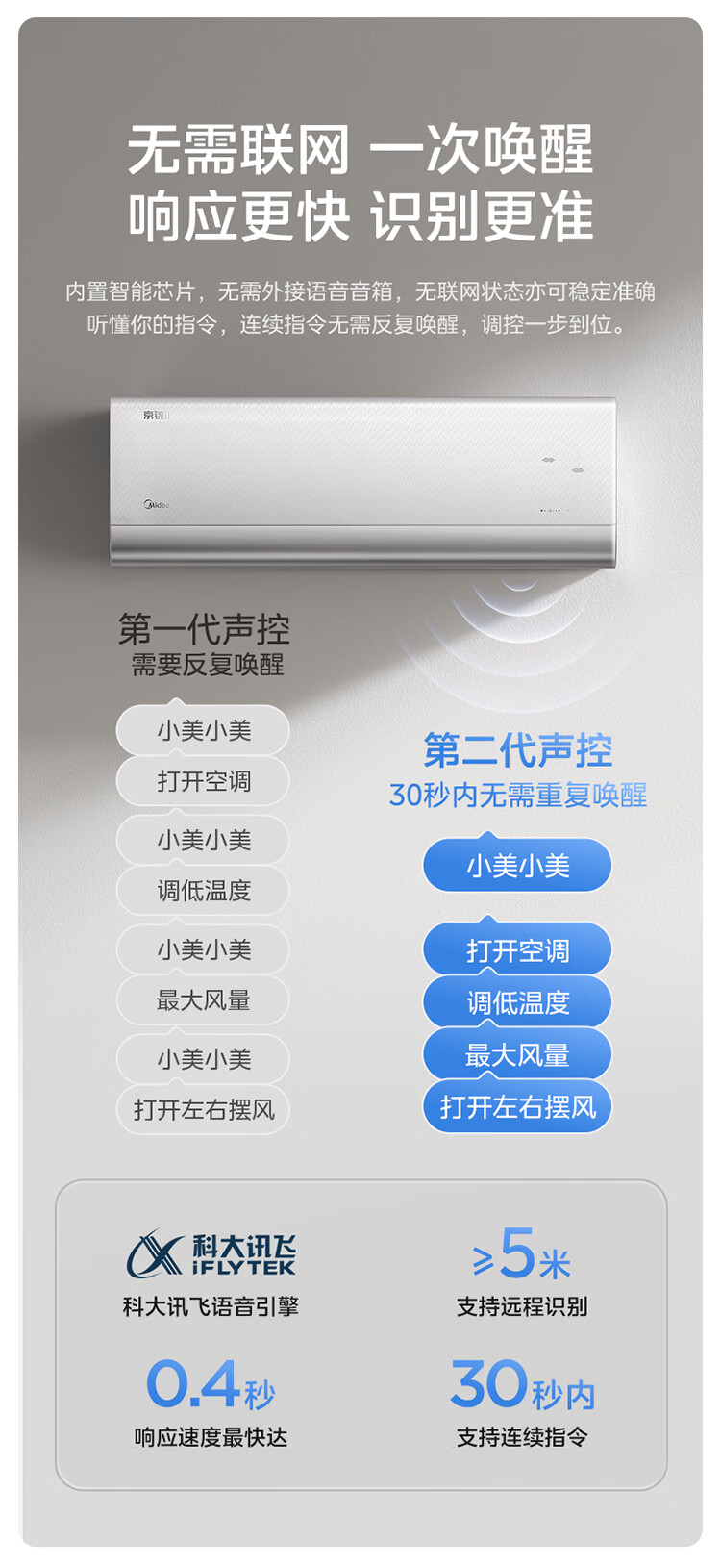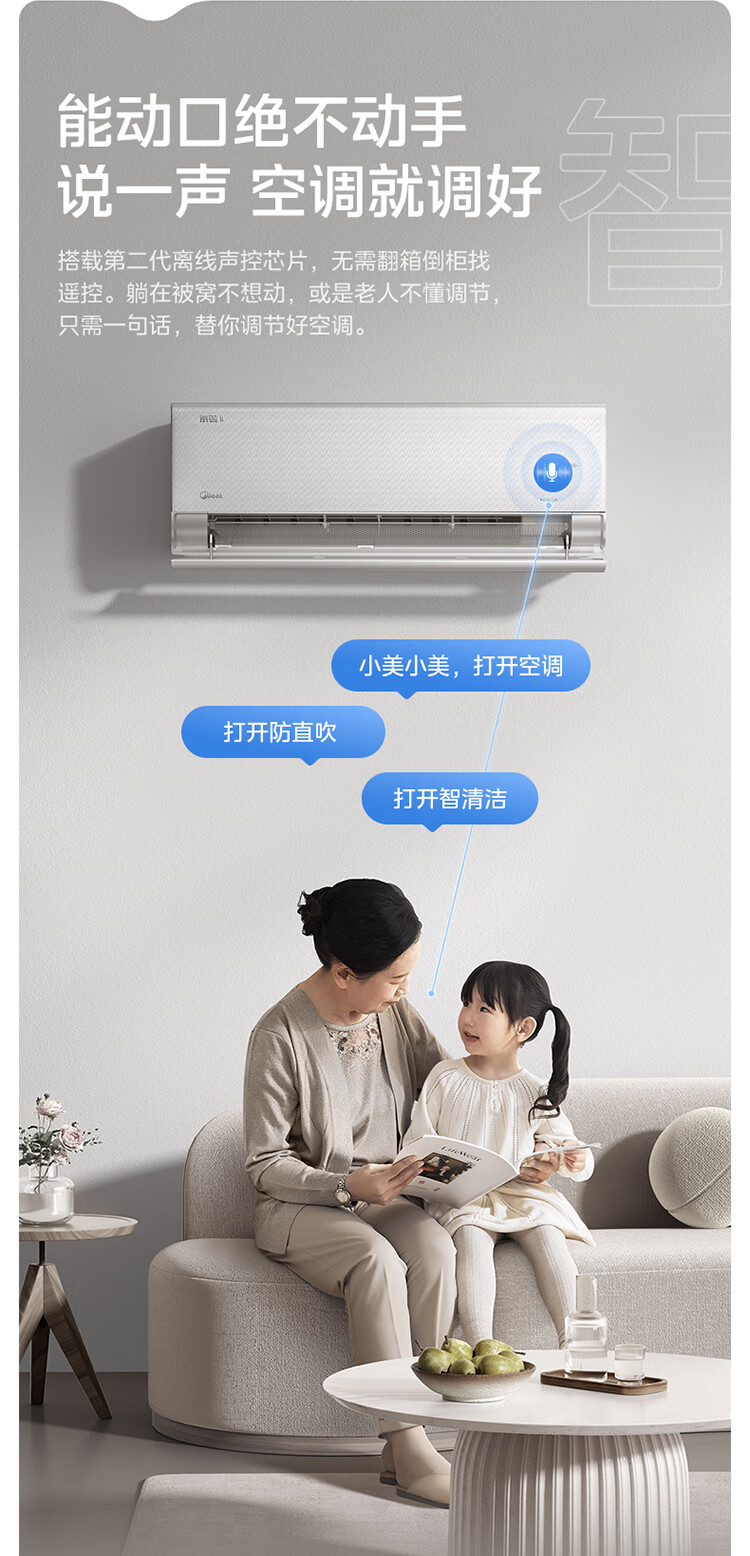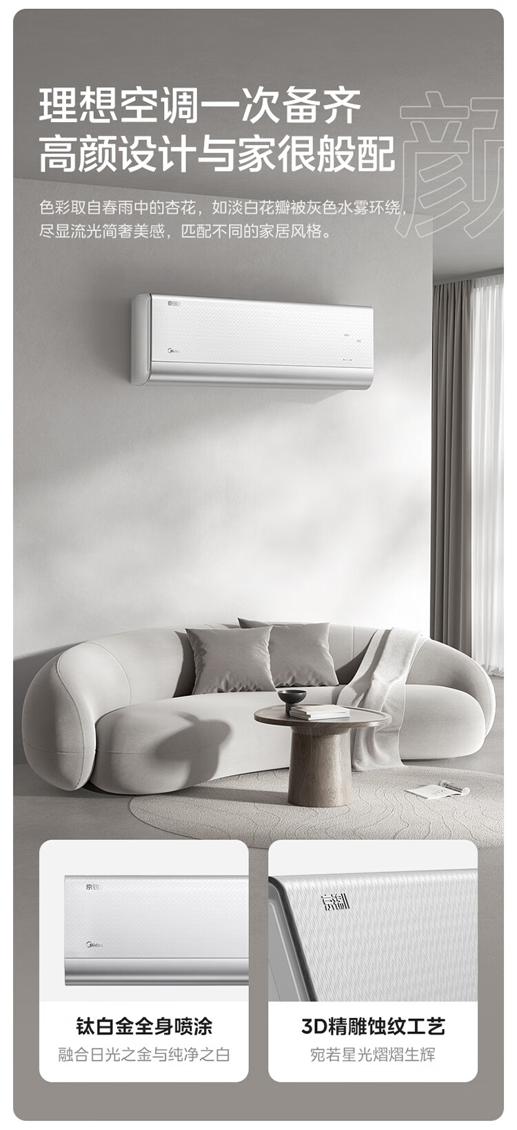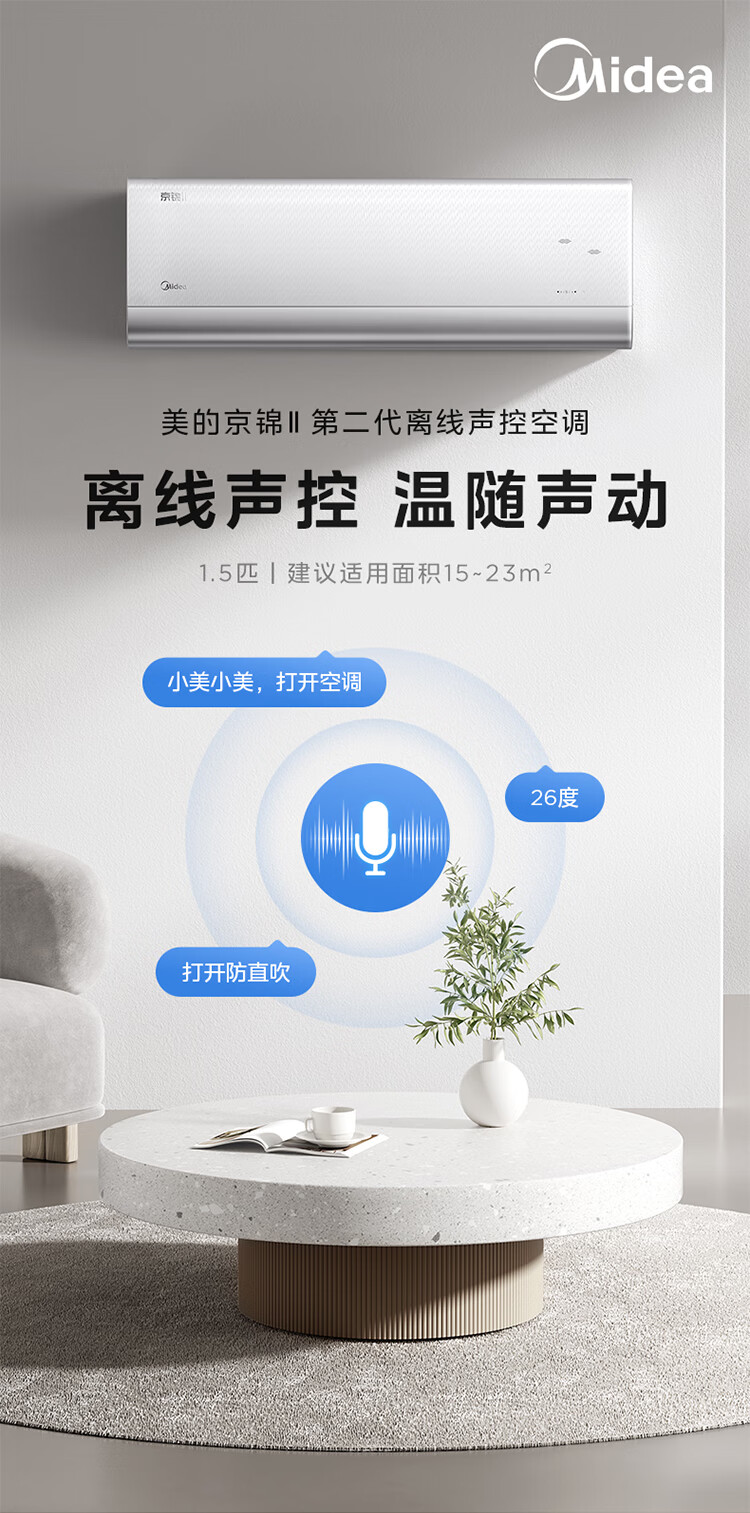 国补到手价3119 元 美的 京锦Ⅱ 大1.5匹挂机空调 变频 一级能效 智能语音空调 750m³/h大风量 钛白金 离线声控 防直吹 KFR-35GW/QJ201-1