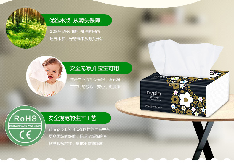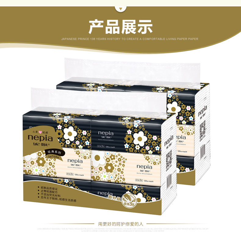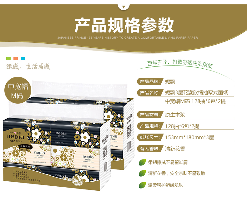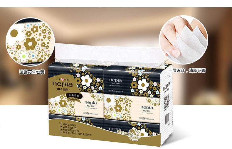 【长江外运】妮飘花漾心情128抽6包三层中宽幅抽纸