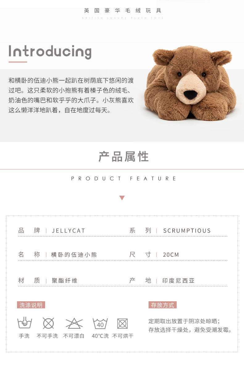 Jellycat 横卧的伍迪小熊20cm