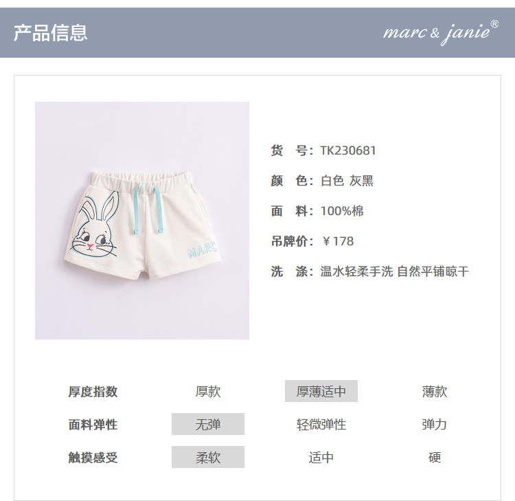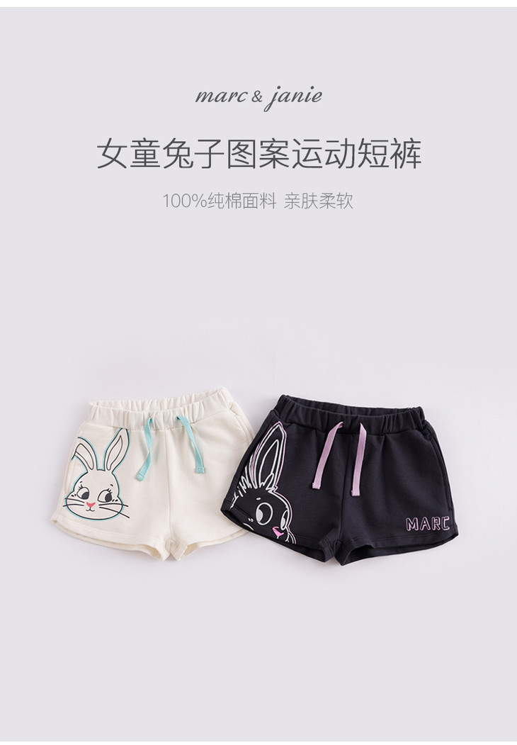 马克珍妮夏装新款 女童小兔子纯棉运动短裤 儿童裤子230681