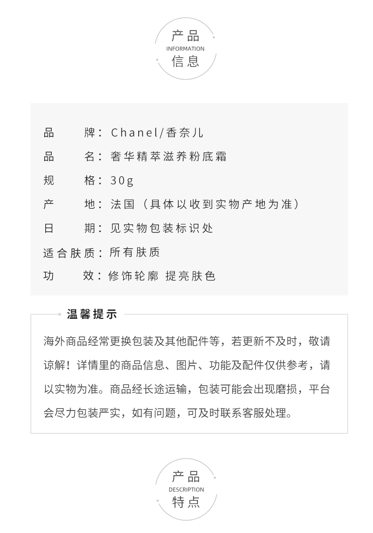 CHANEL香奈儿奢华精萃粉底霜 呵护滋润持妆 30g【CDF】