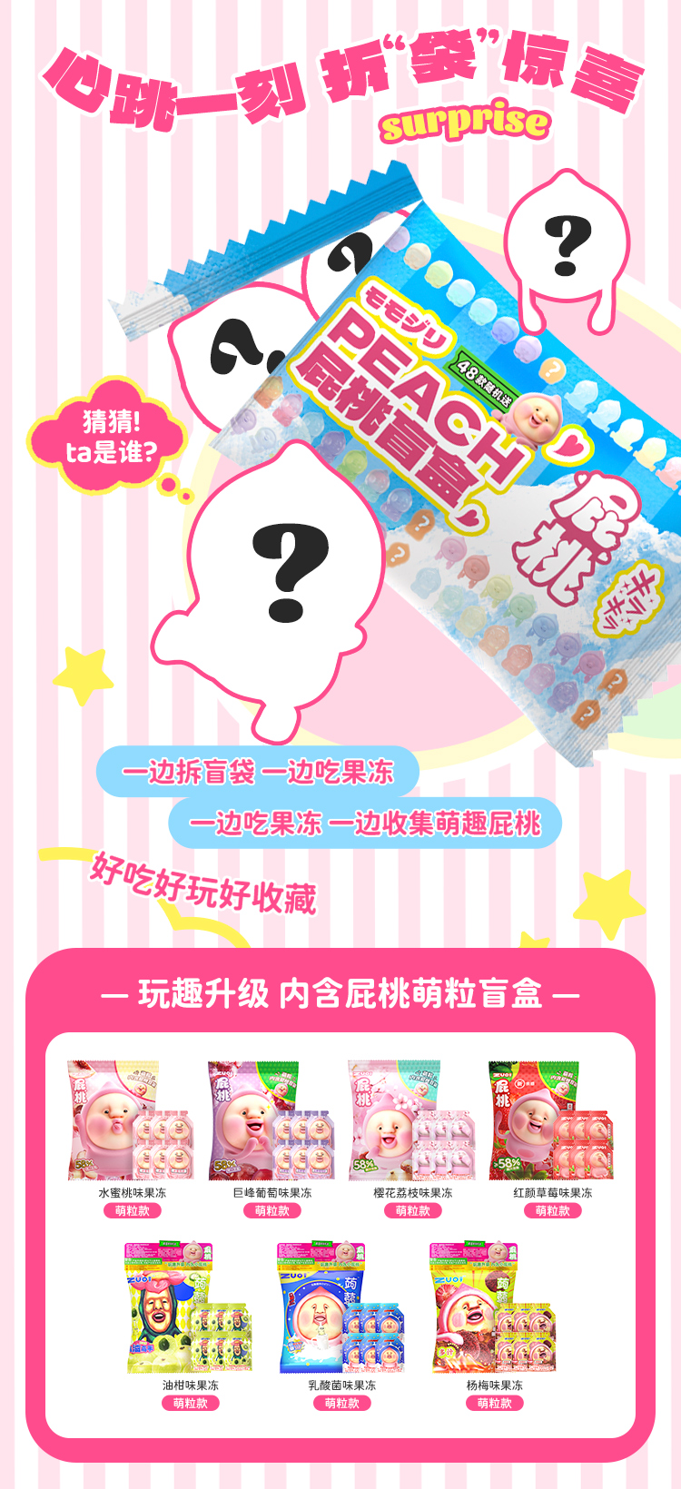 【萌趣惊喜❗️水果杨梅萌粒果冻】甄选品质原料制作,添加58%真果汁含量,一口吃下满口清新,0脂低卡屁桃萌粒果冻,开袋即食可爱萌粒零食酸甜赠限量手办零食L
