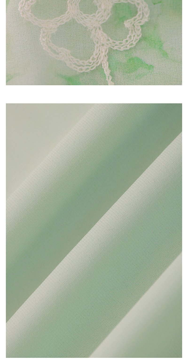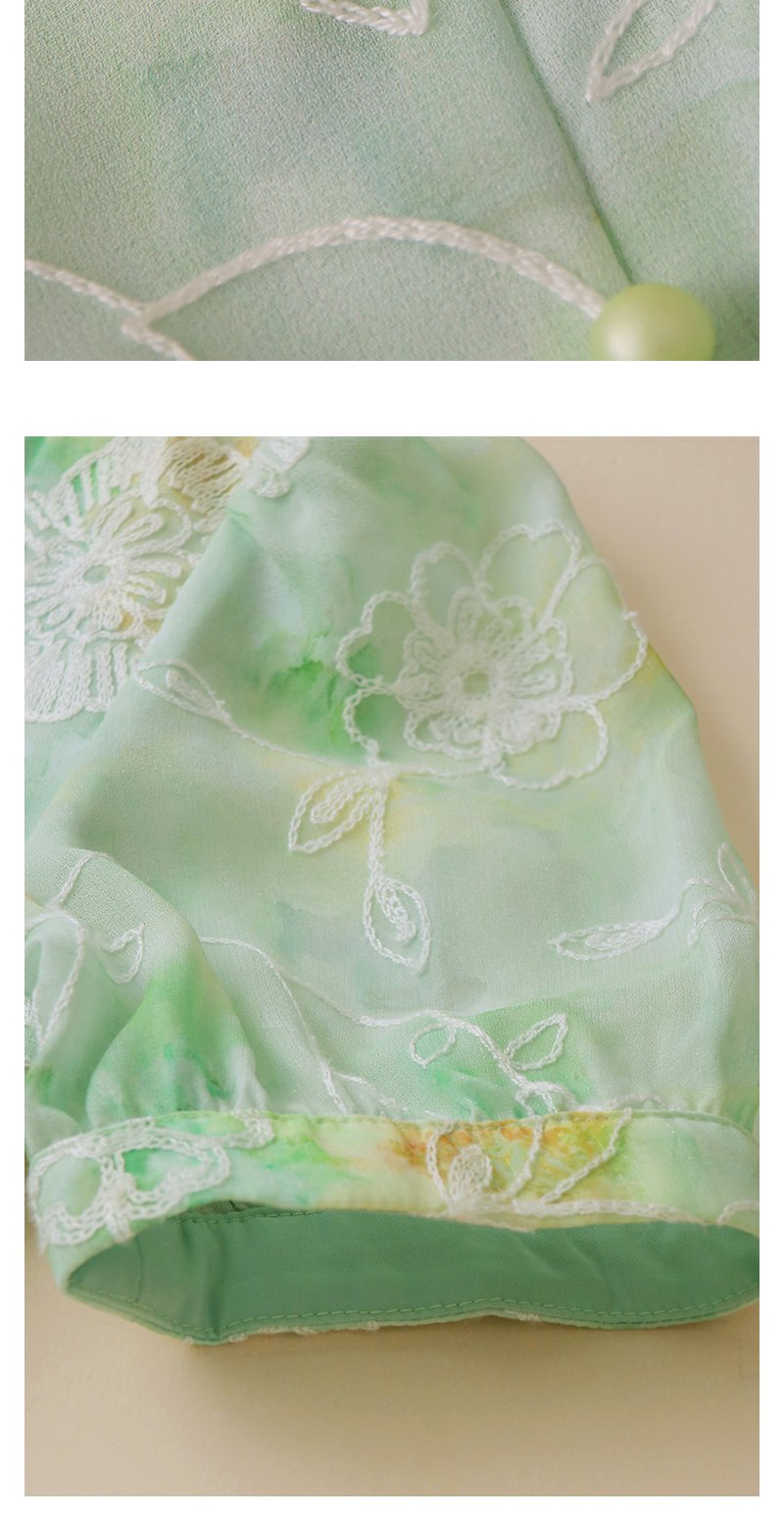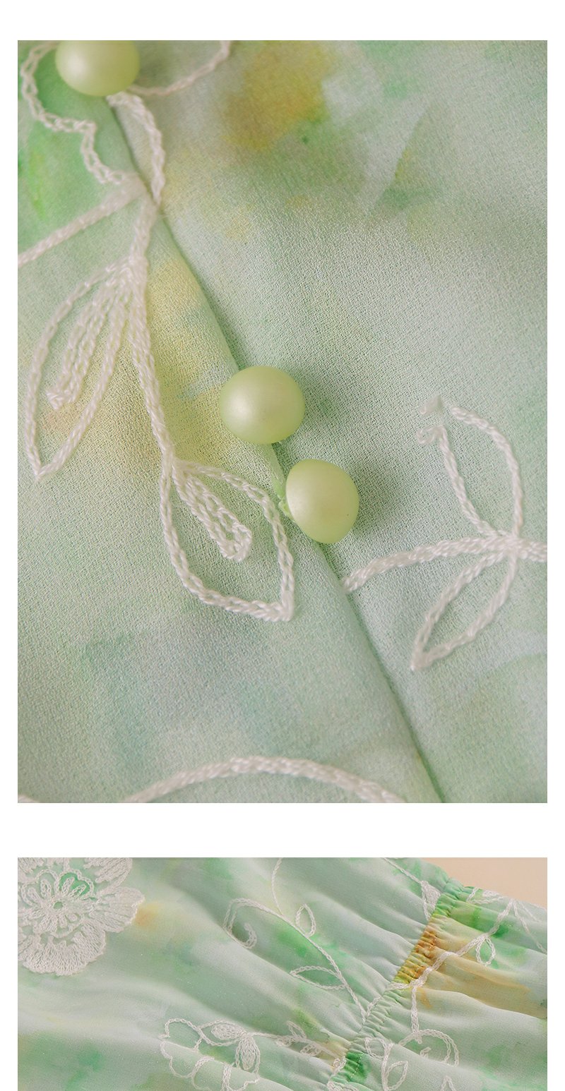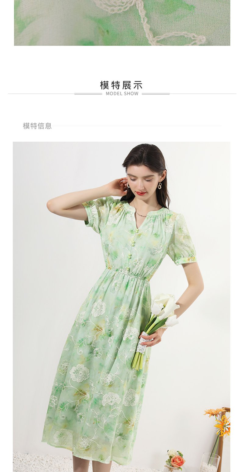 未风绿色雪纺绣花连衣裙女夏2024夏季新款气质泡泡袖遮肉显瘦裙子