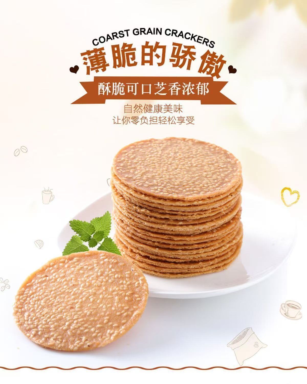 【入口香酥脆爽!铁棍山药芝麻薄饼】酥脆可口,满满的芝麻,传统工艺够脆够薄,芳香四溢,薄脆饼干整箱散装零食小吃休闲办公食品健康特价清仓
