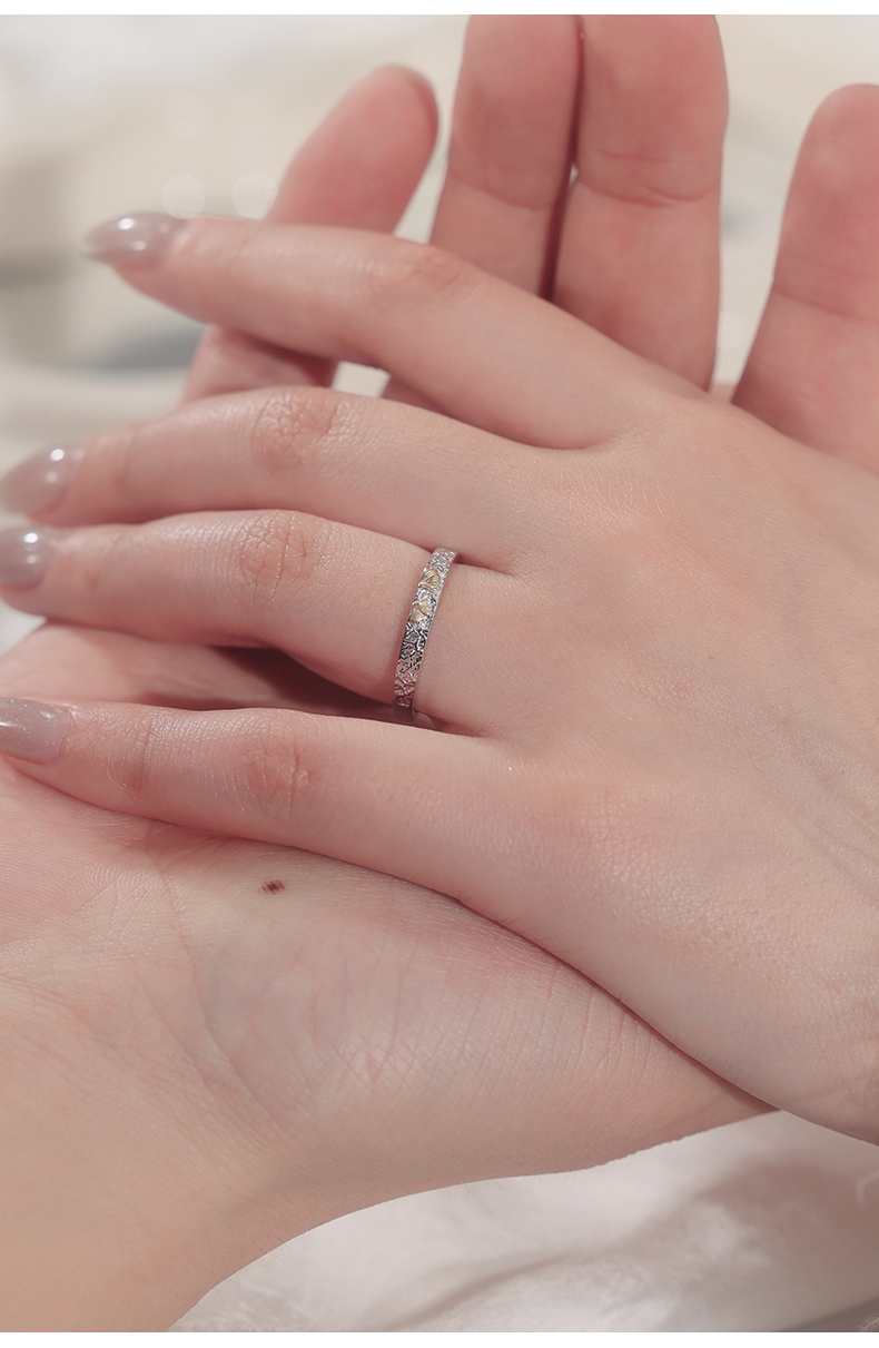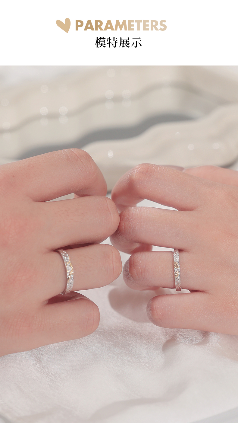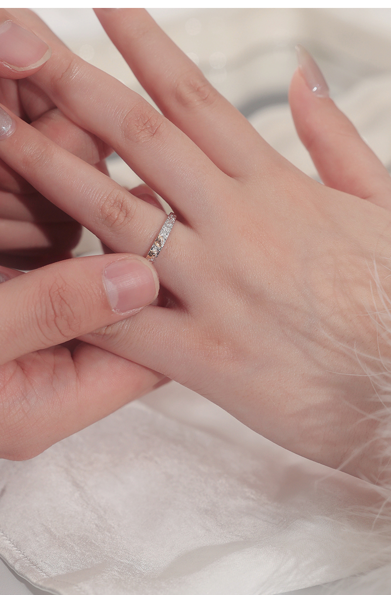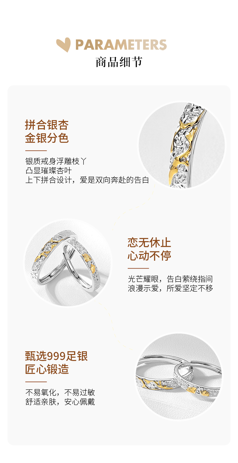 卡蒂罗/KADER【足银999】 卡蒂罗KADER 流光银杏情侣对戒 碎冰冰三生有杏原创设计简约冰川纹理感可调节素圈一对 时尚百搭通勤 999足银 戒指 男女同款情侣款