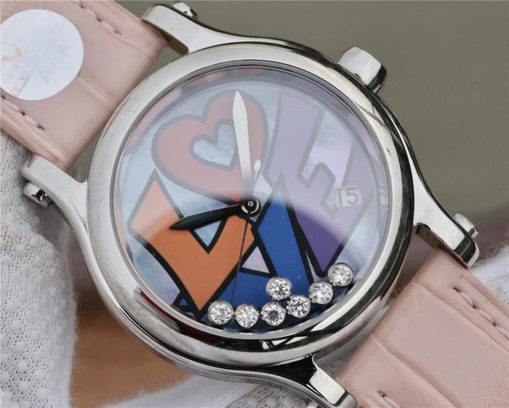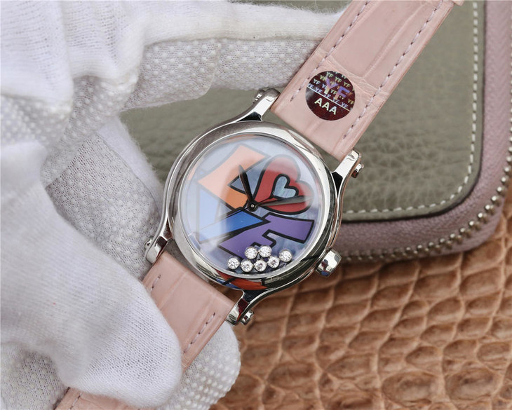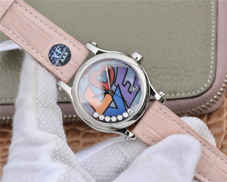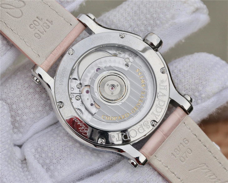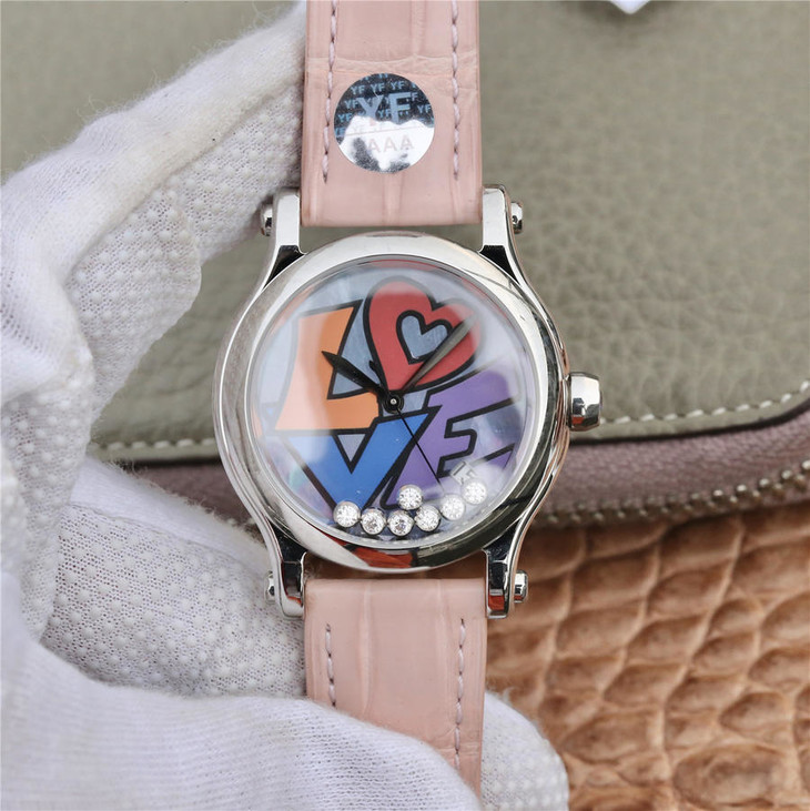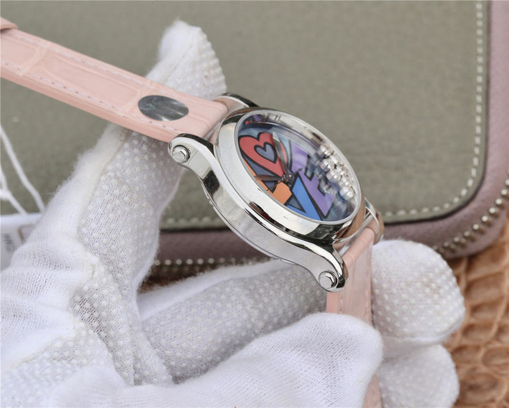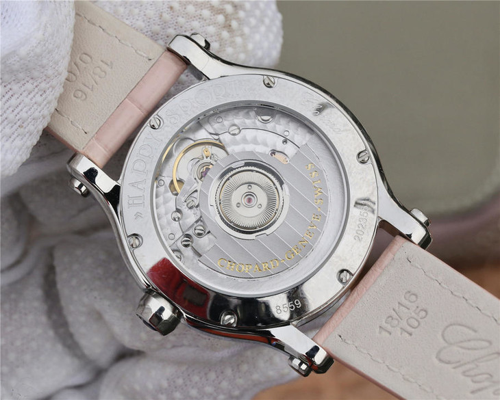 YF萧邦 HAPPY DIAMONDS 五彩缤纷系列 278559-3020 。女士腕表,皮表带,自动机械机芯,透底。