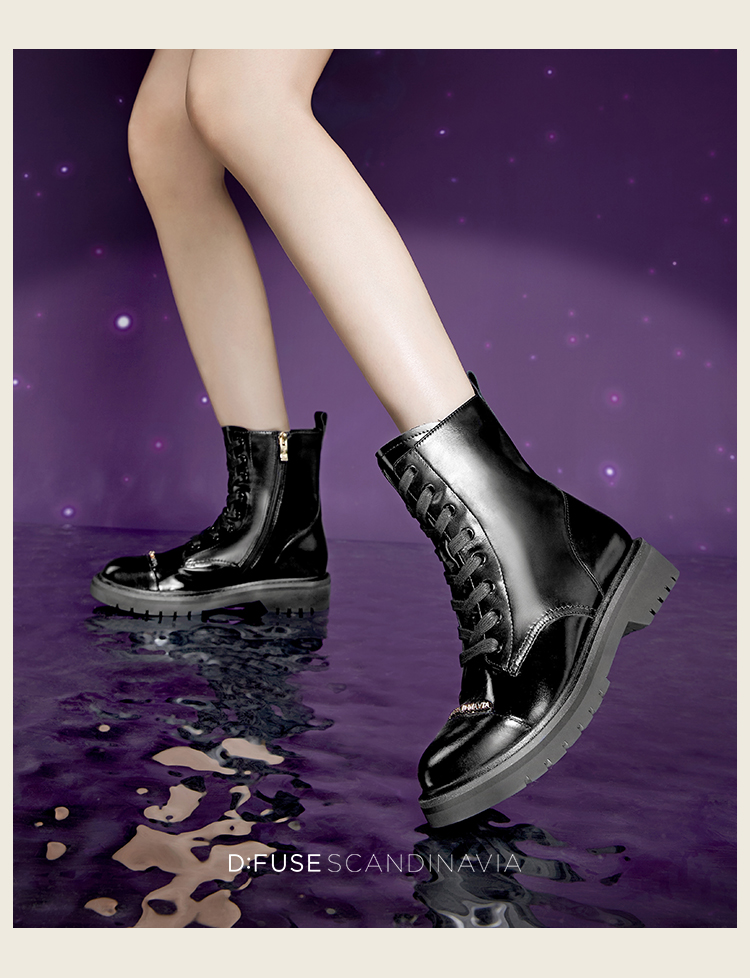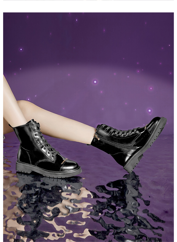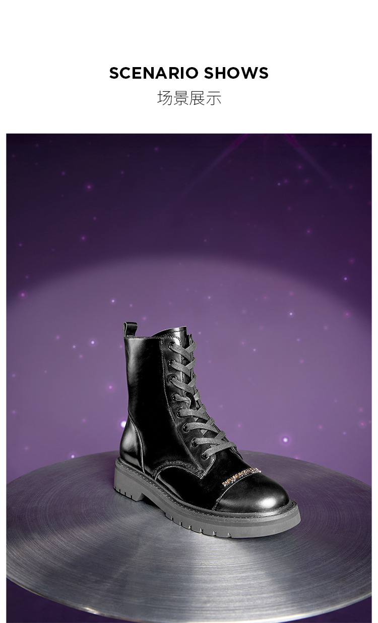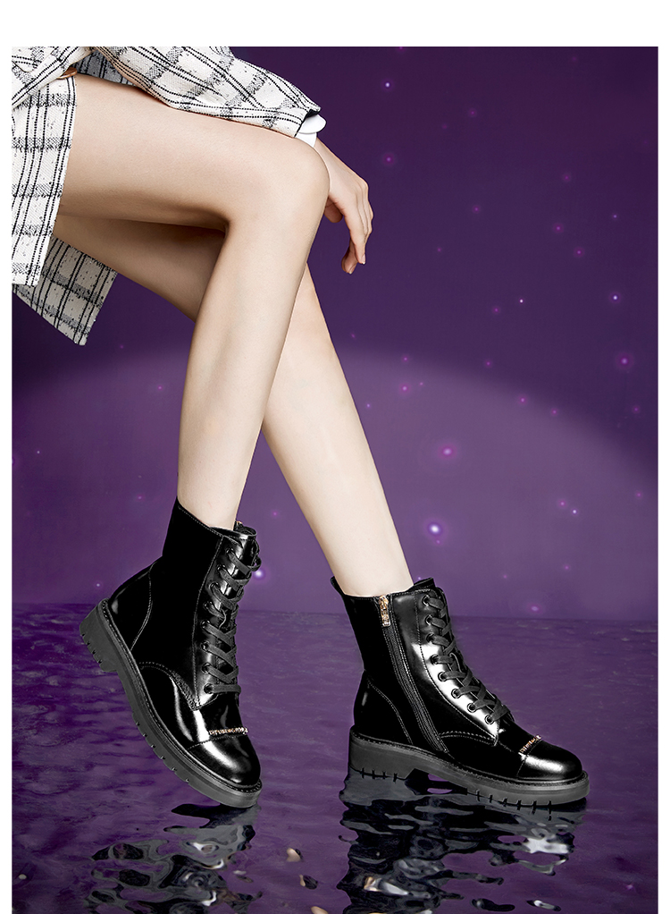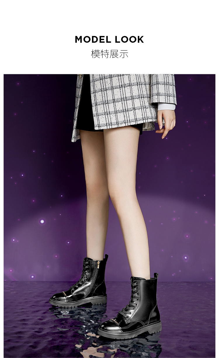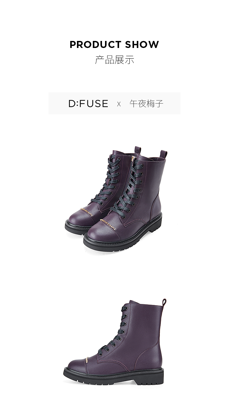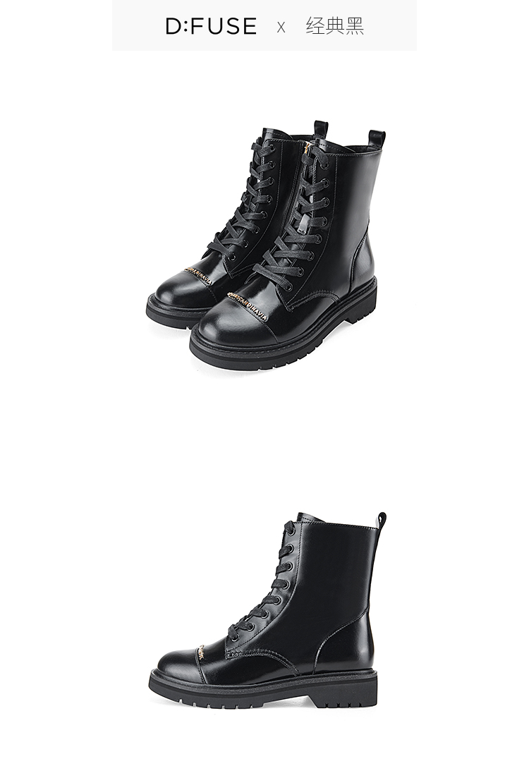 Dfuse迪芙斯冬季新款经典牛皮圆头短靴金属牌件马丁靴DF34116108
