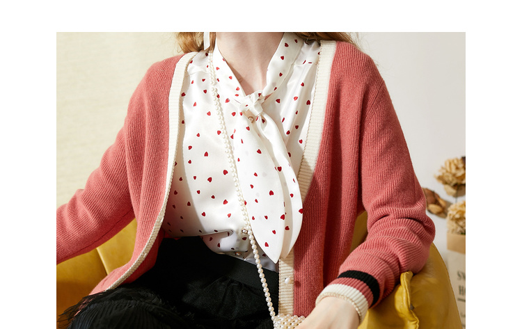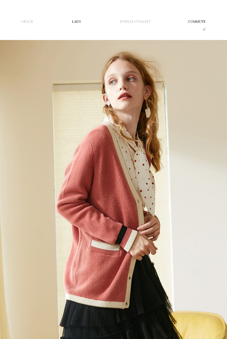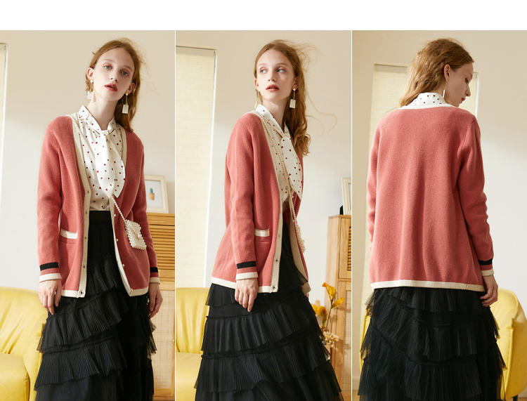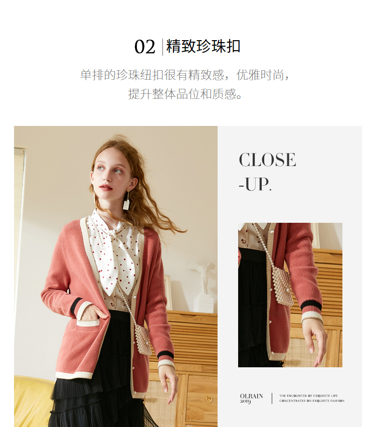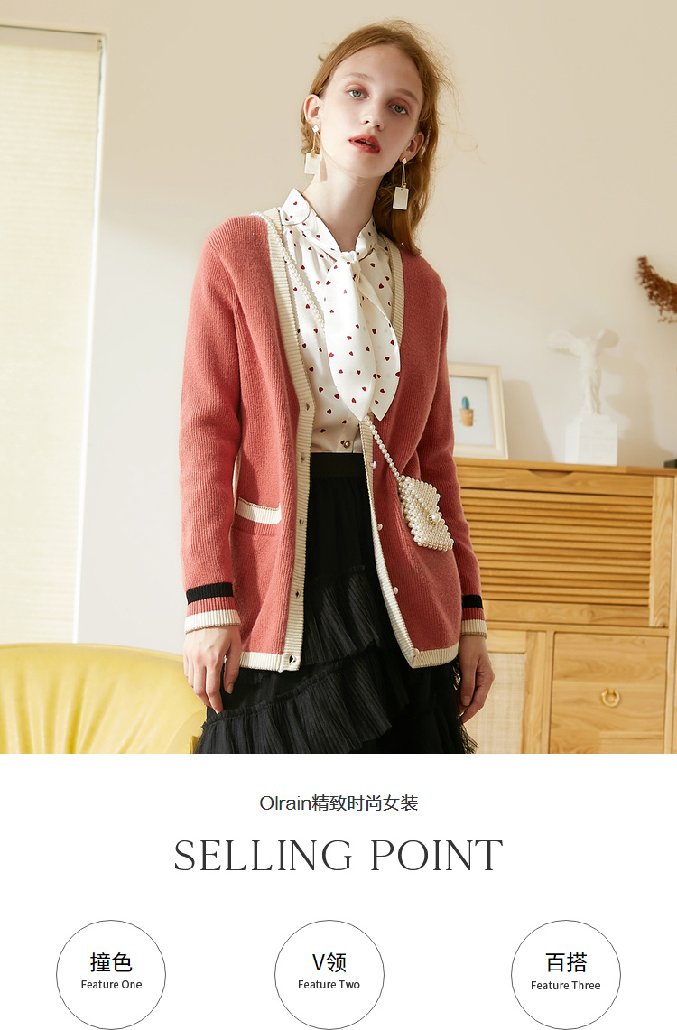 欧芮儿2019秋装新款宽松显瘦V领开衫针织衫女学院风撞色百搭毛衣