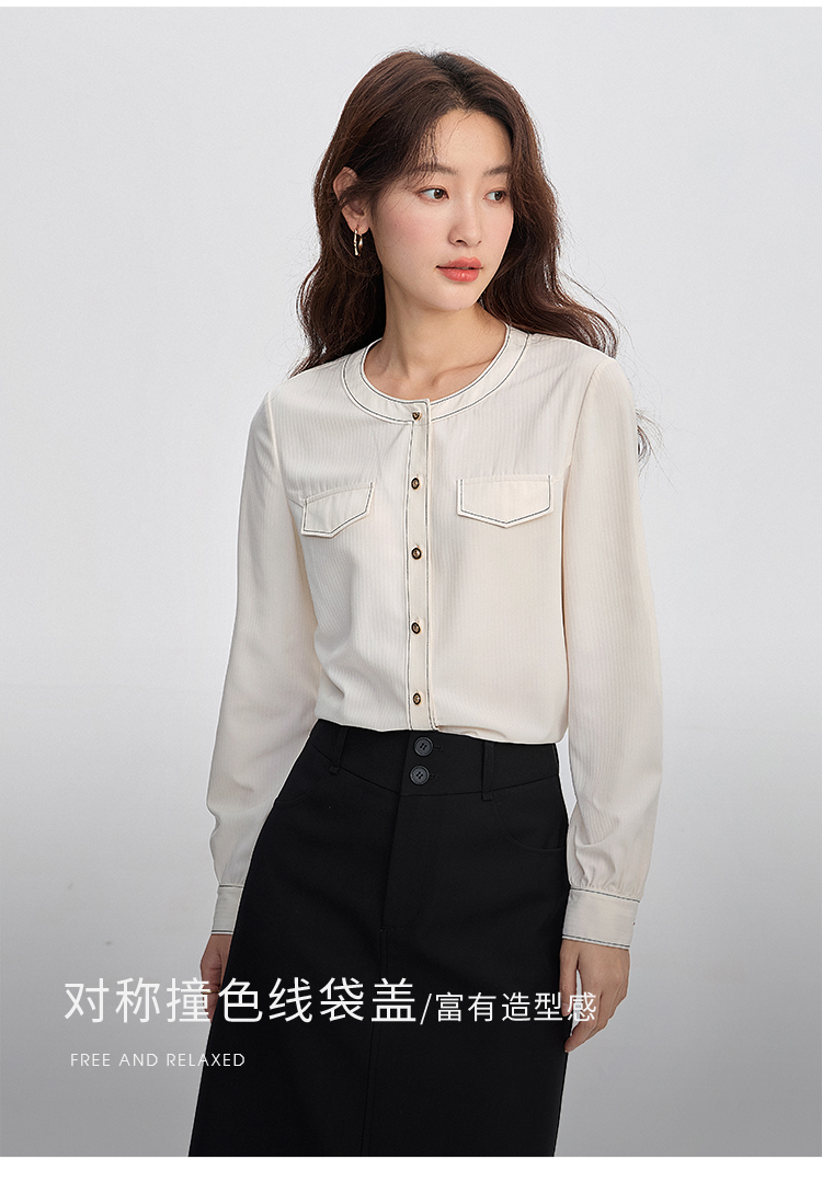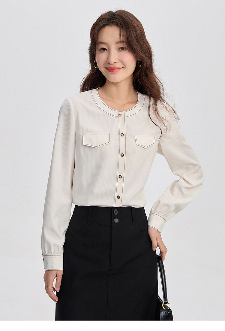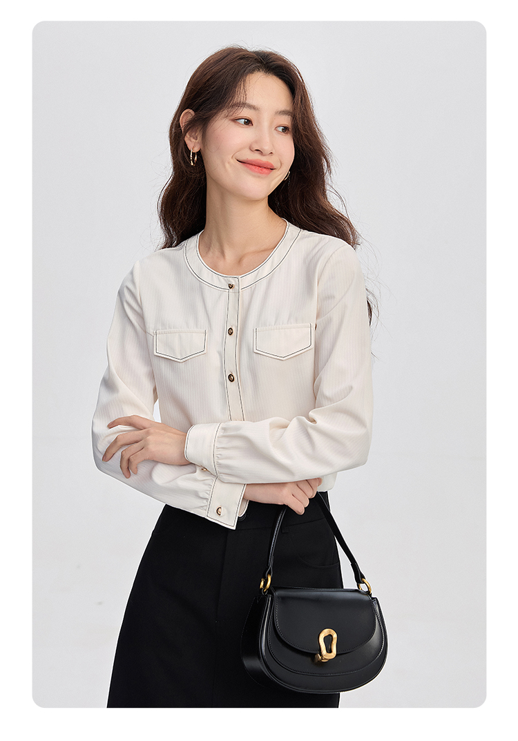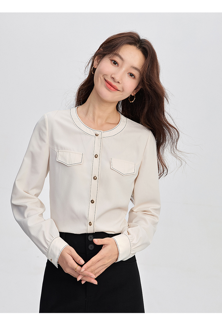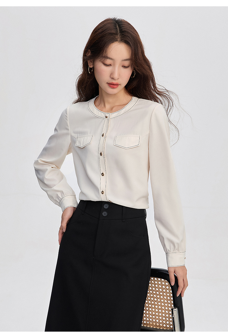 【年终特卖】熙世界法式小香风白色衬衫女2025秋装新款设计感通勤时尚长袖上衣