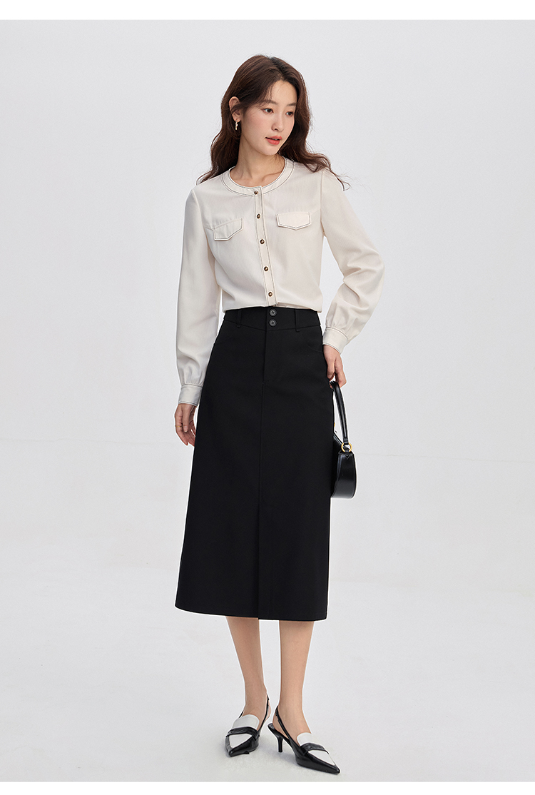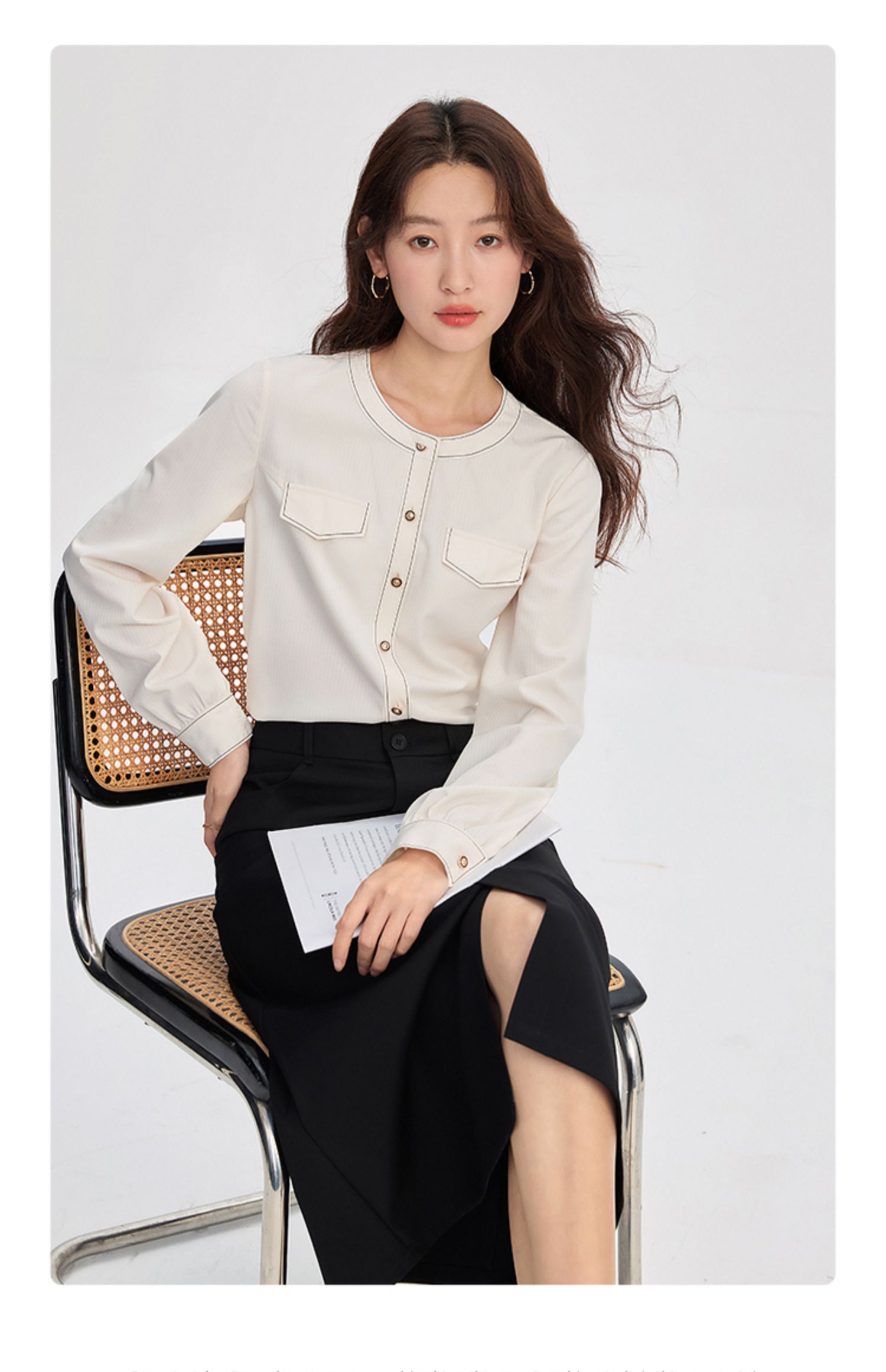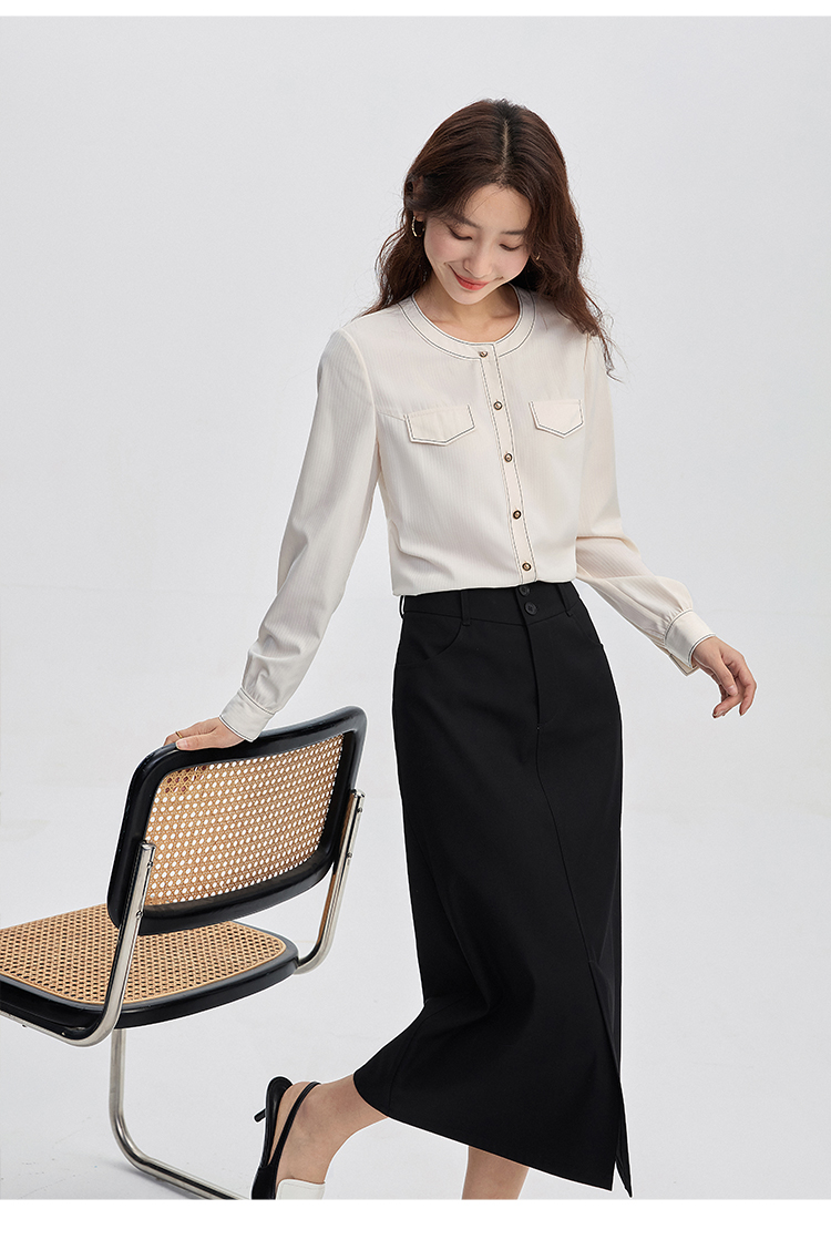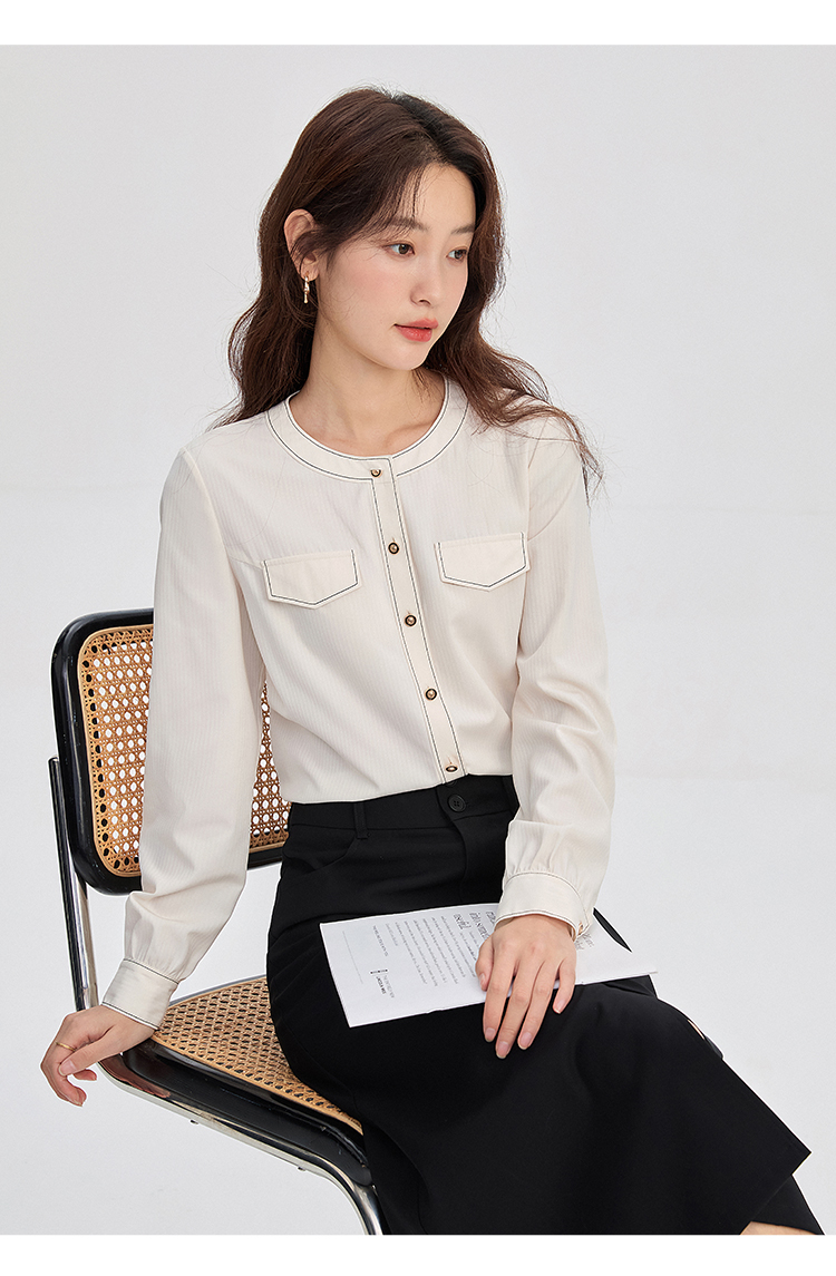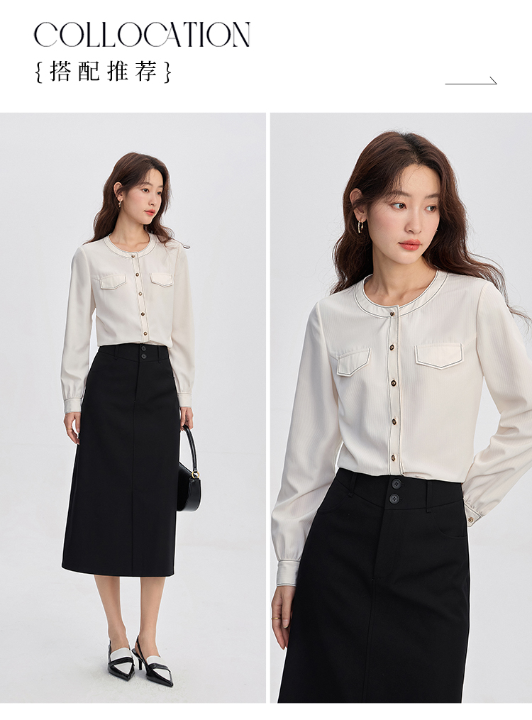【年终特卖】熙世界法式小香风白色衬衫女2025秋装新款设计感通勤时尚长袖上衣
