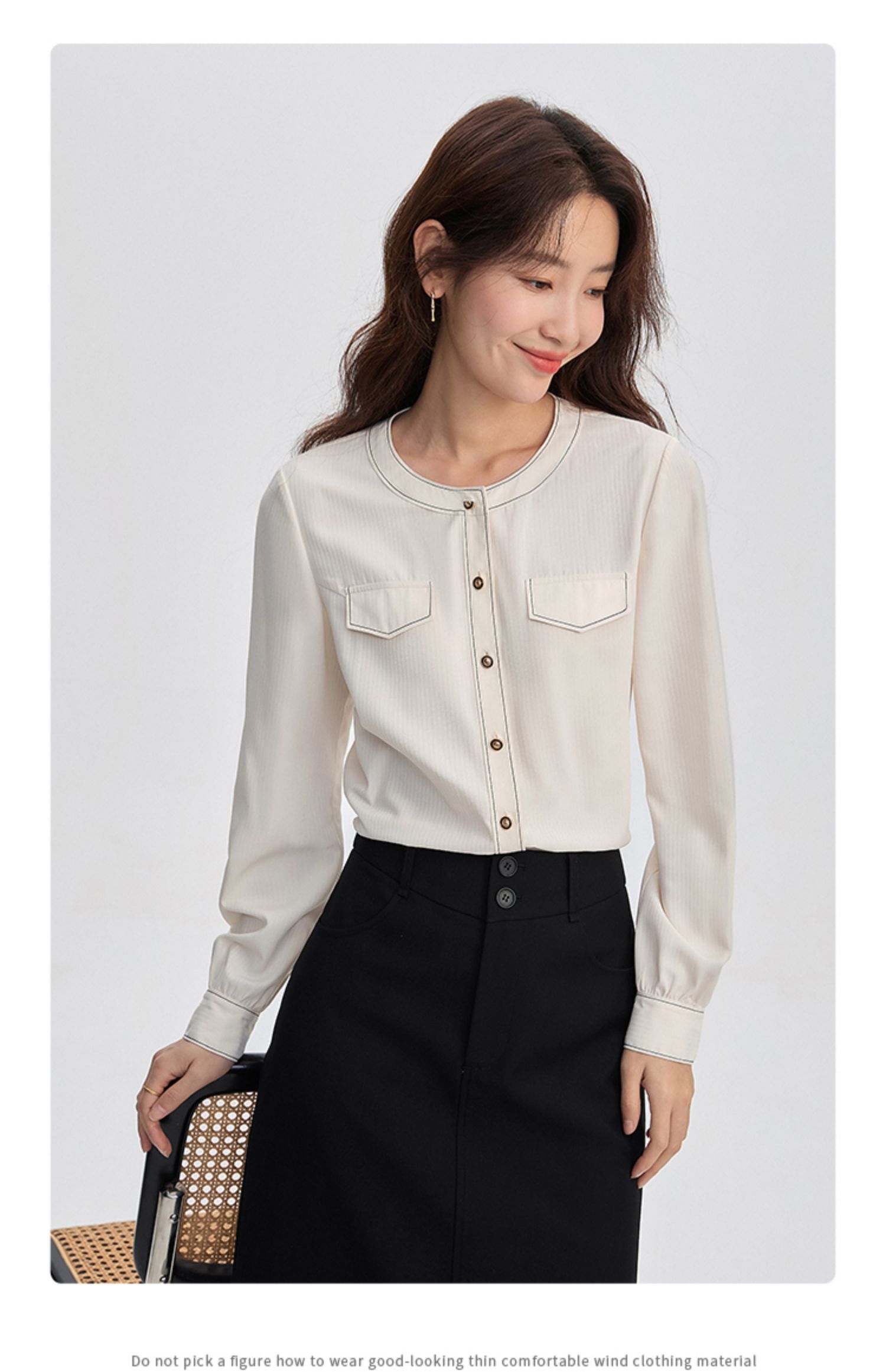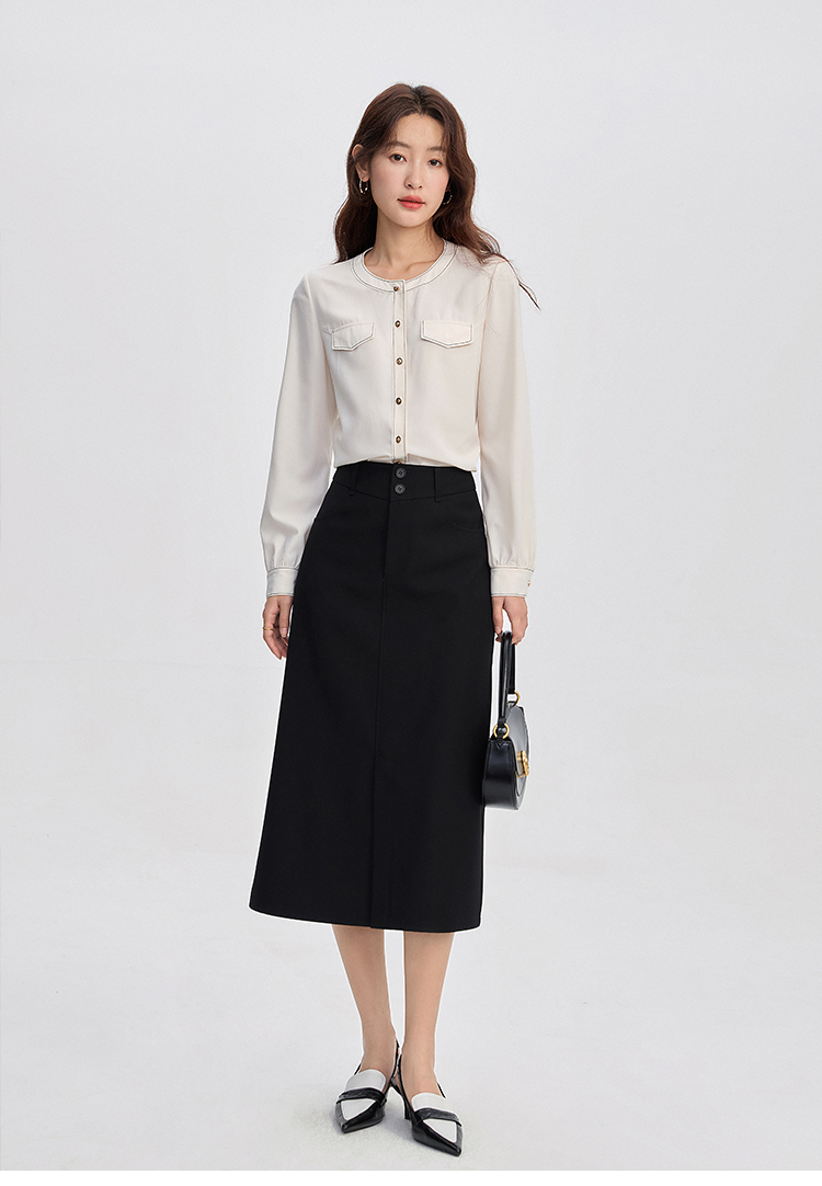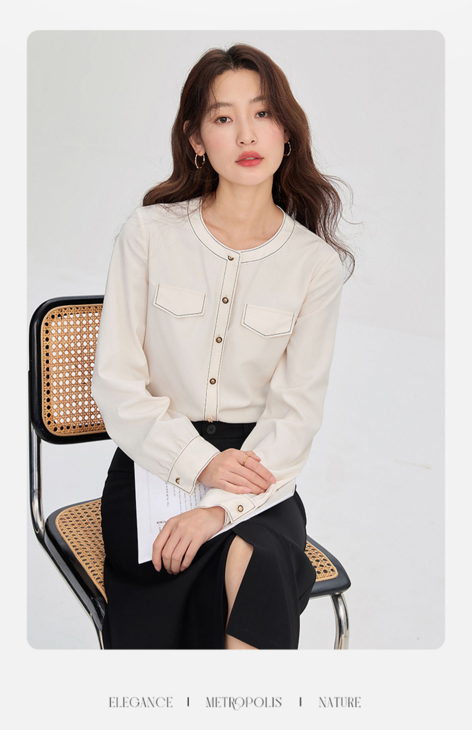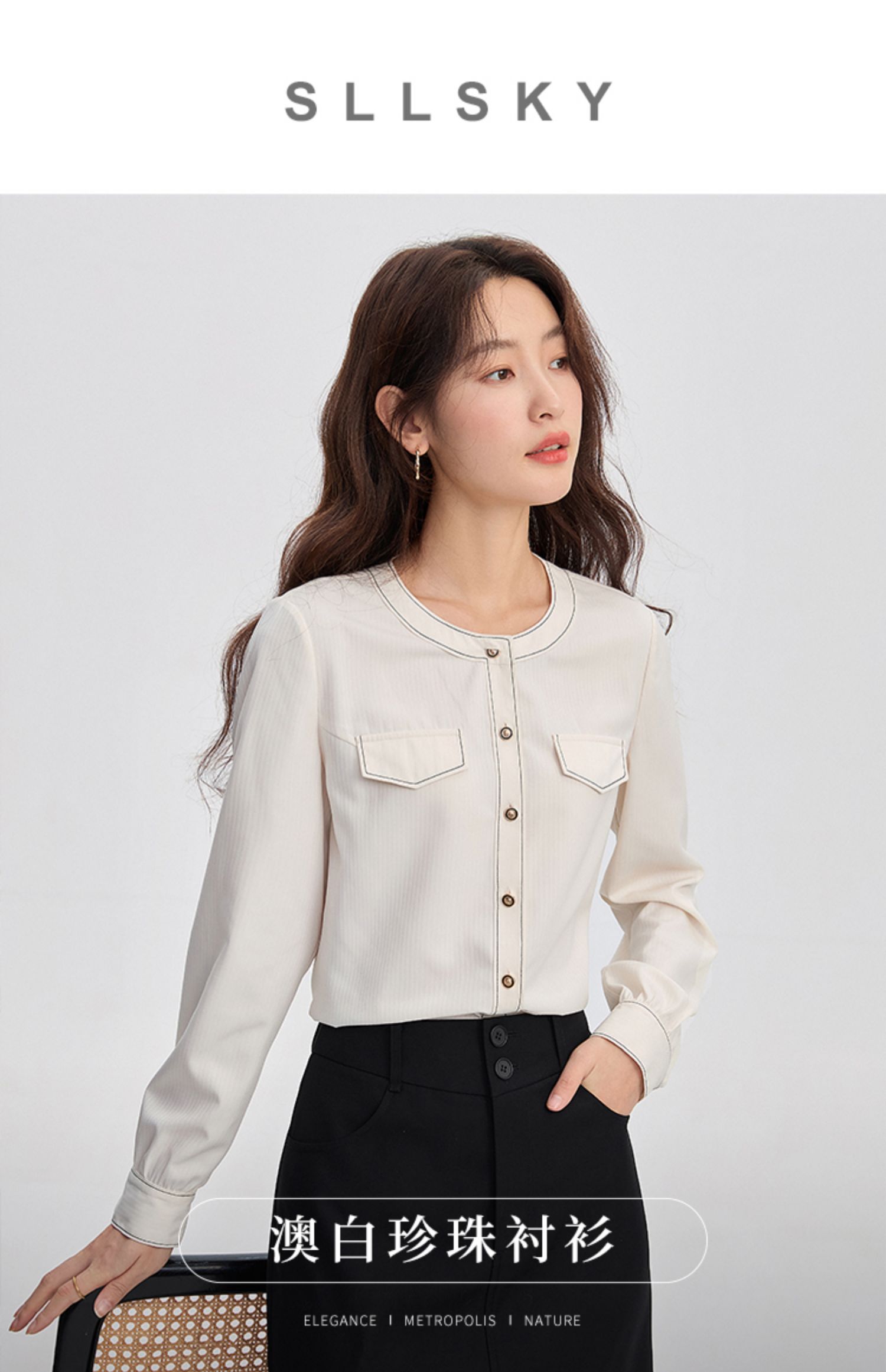 【年终特卖】熙世界法式小香风白色衬衫女2025秋装新款设计感通勤时尚长袖上衣