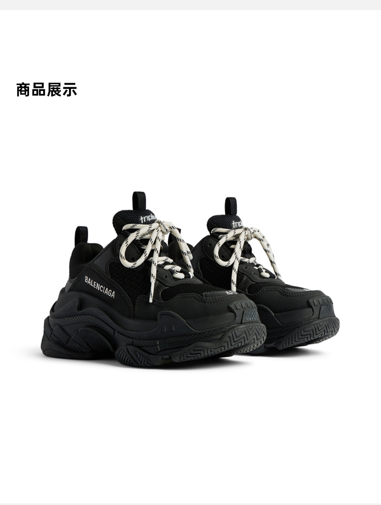 BALENCIAGA 巴黎世家 女士 Triple S 网布运动老爹鞋 黑色 524036 W2CA1 1000
