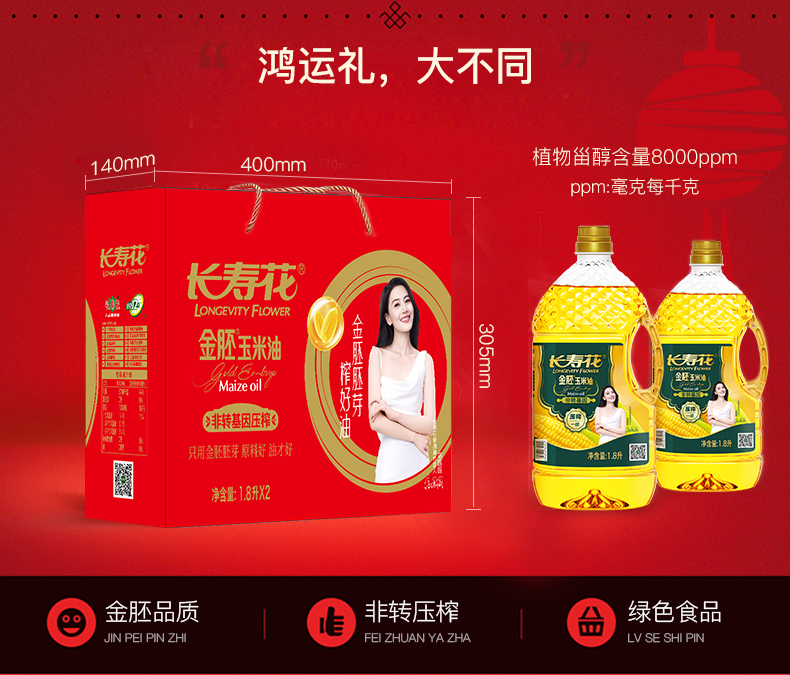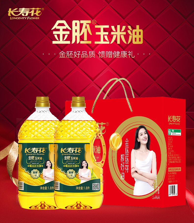 【礼盒】长寿花金胚玉米油1.8L*2定制礼盒烘焙食用油节日礼品