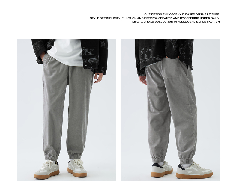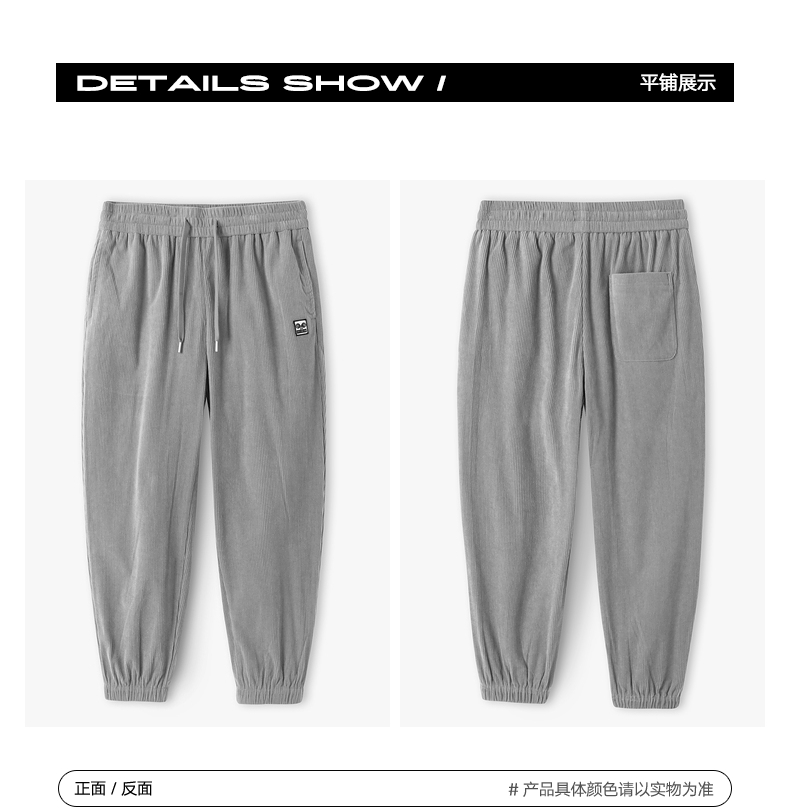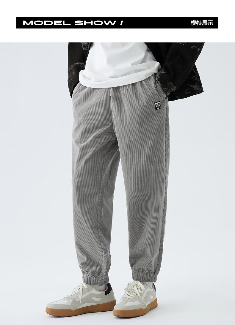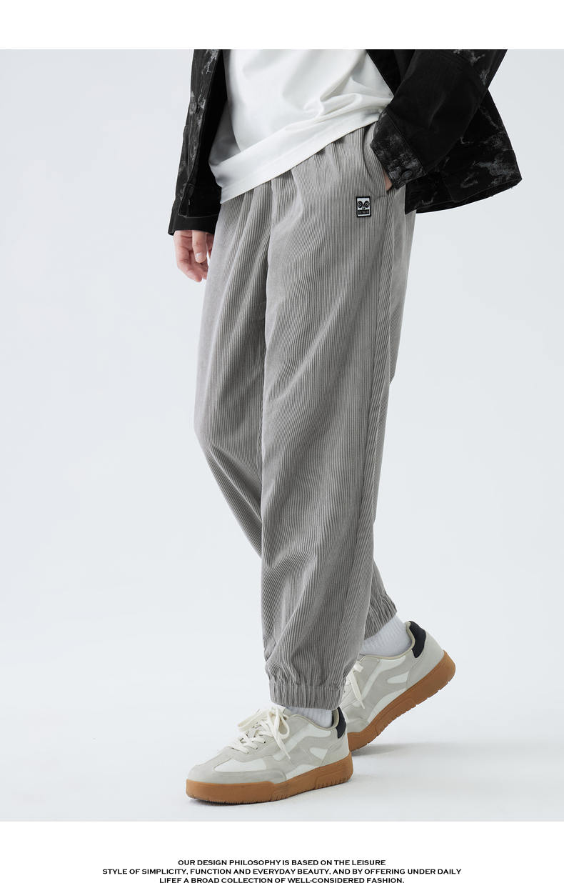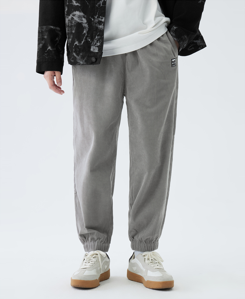 gxgjeans男装灯芯绒休闲裤男春秋季灰色宽松束脚裤子