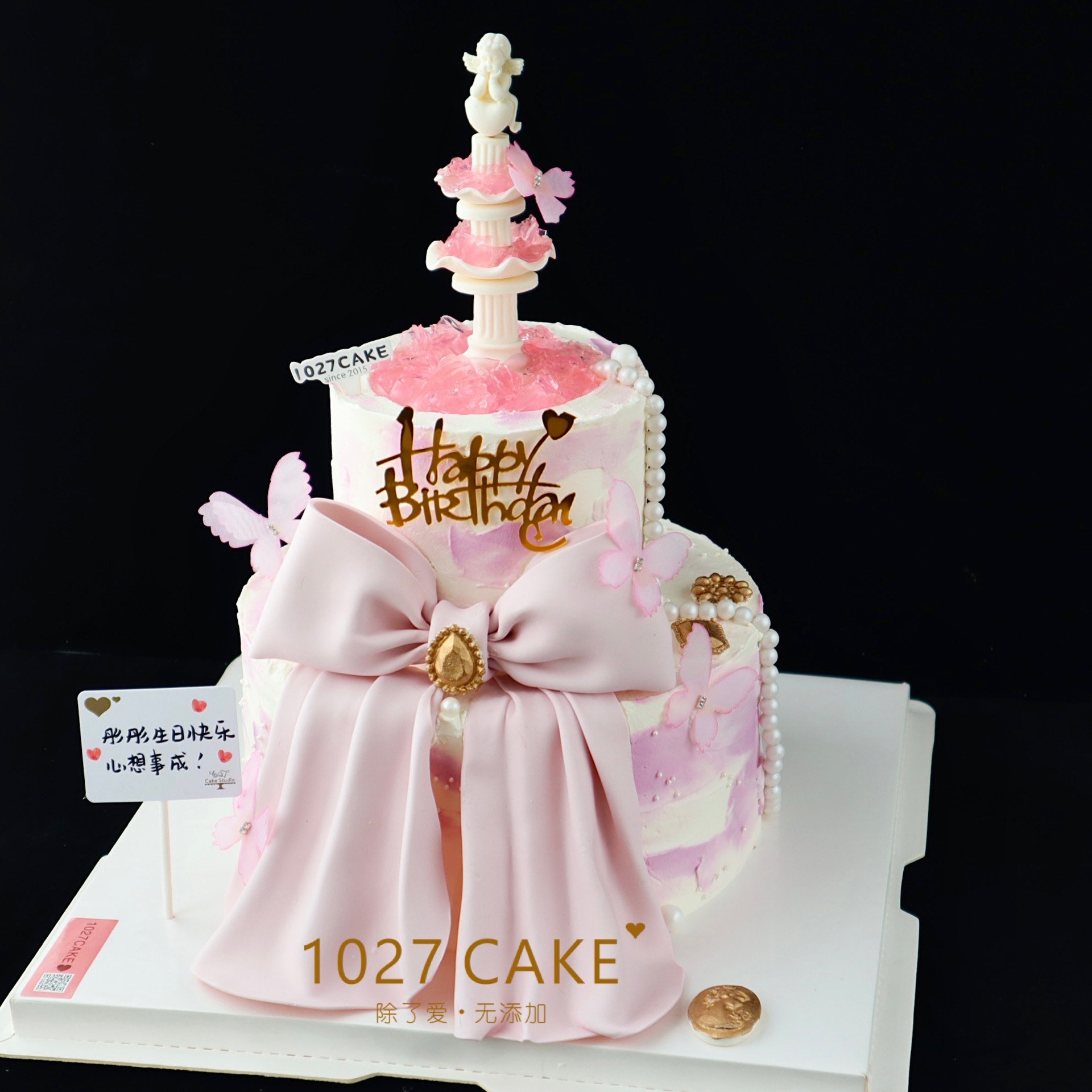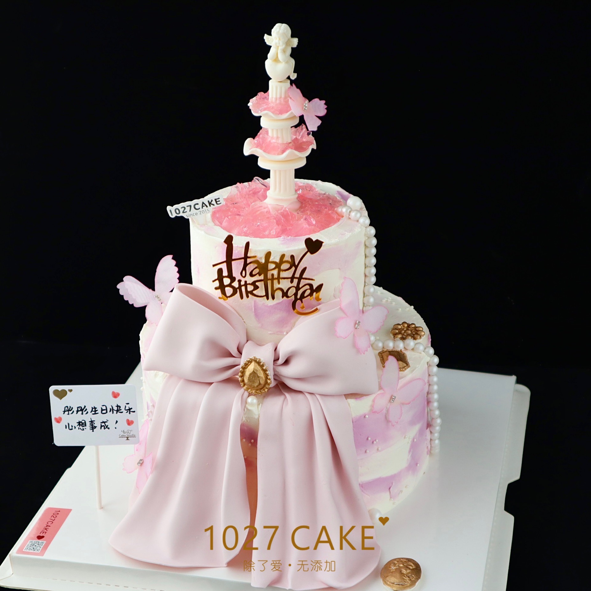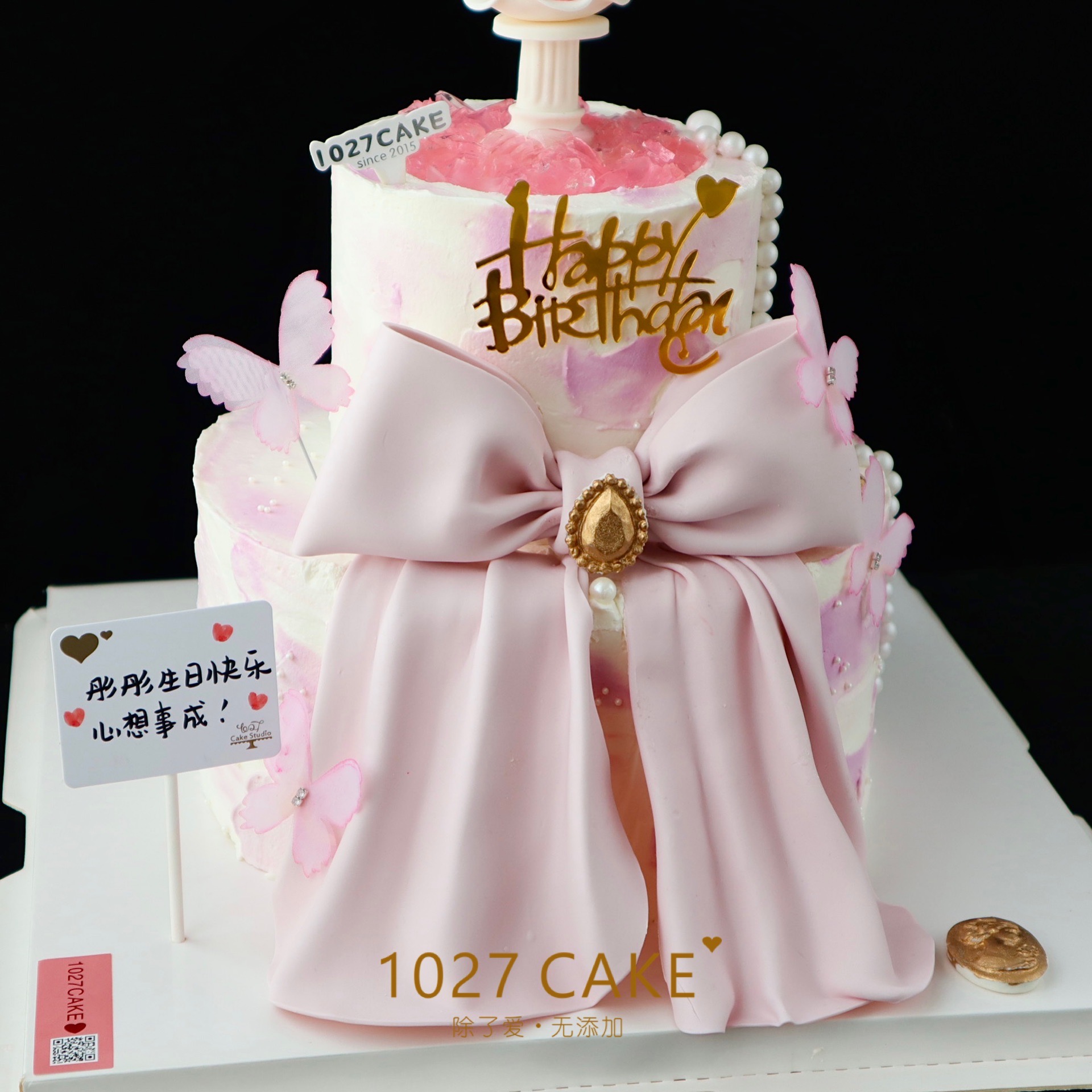 1027CAKE | 双层少女心许愿池 蝴蝶结(需提前1-2天)