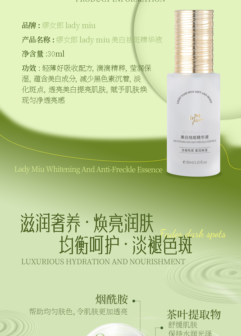 (新品限时优惠)缪女郎lady miu美白祛斑精华液补水淡斑柔和护肤