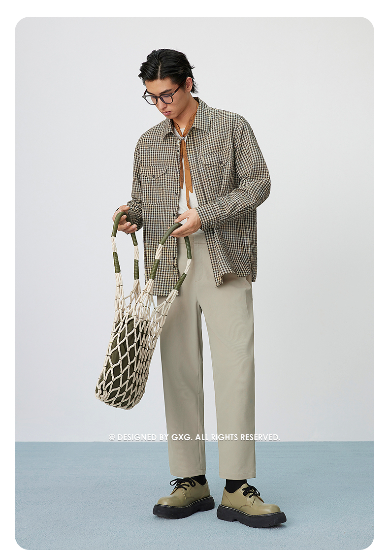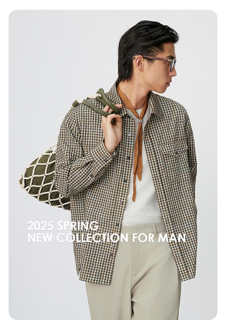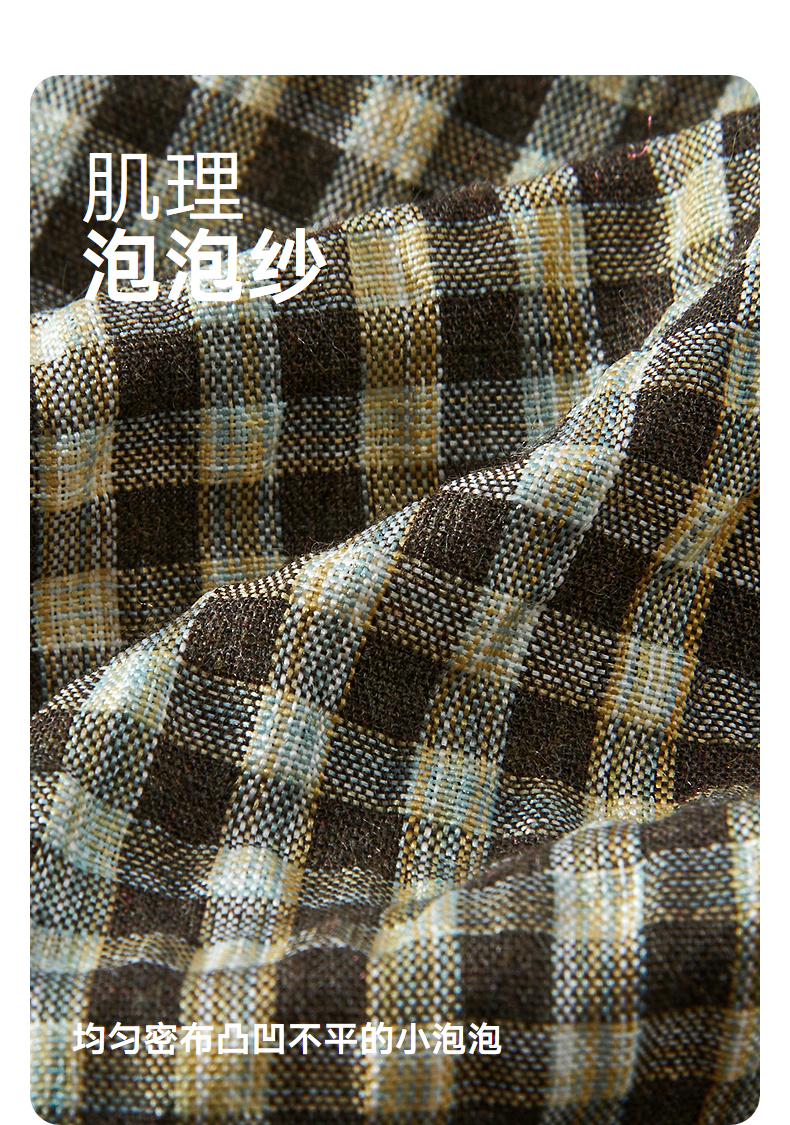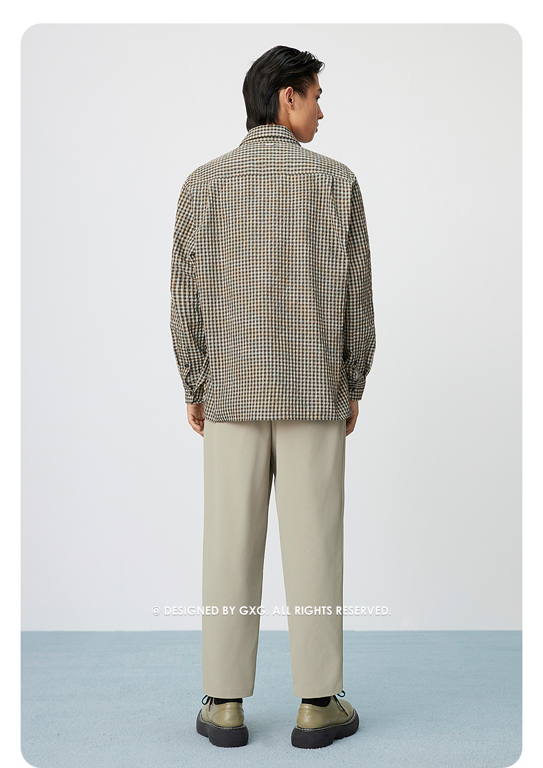 GXG男装 泡泡纱格纹时尚休闲通勤翻领长袖衬衫男生 25年春热卖