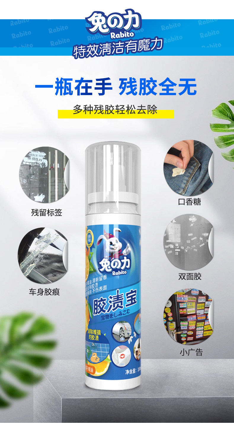 兔力家用除胶剂 粘胶多功能能清洁不干胶清除标签喷雾喷剂祛胶渍宝1.57