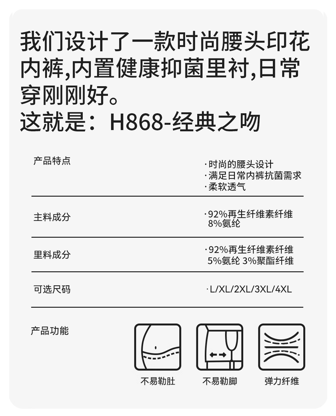 男士莫代尔腰头印花无痕撞色平角内裤3015/H868