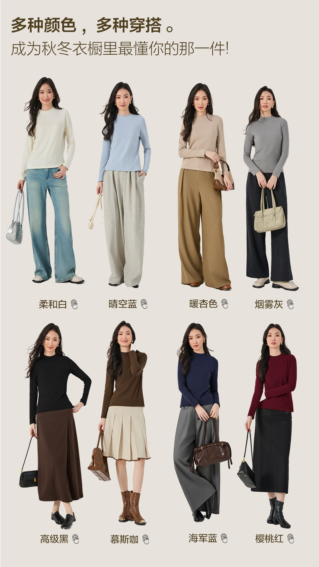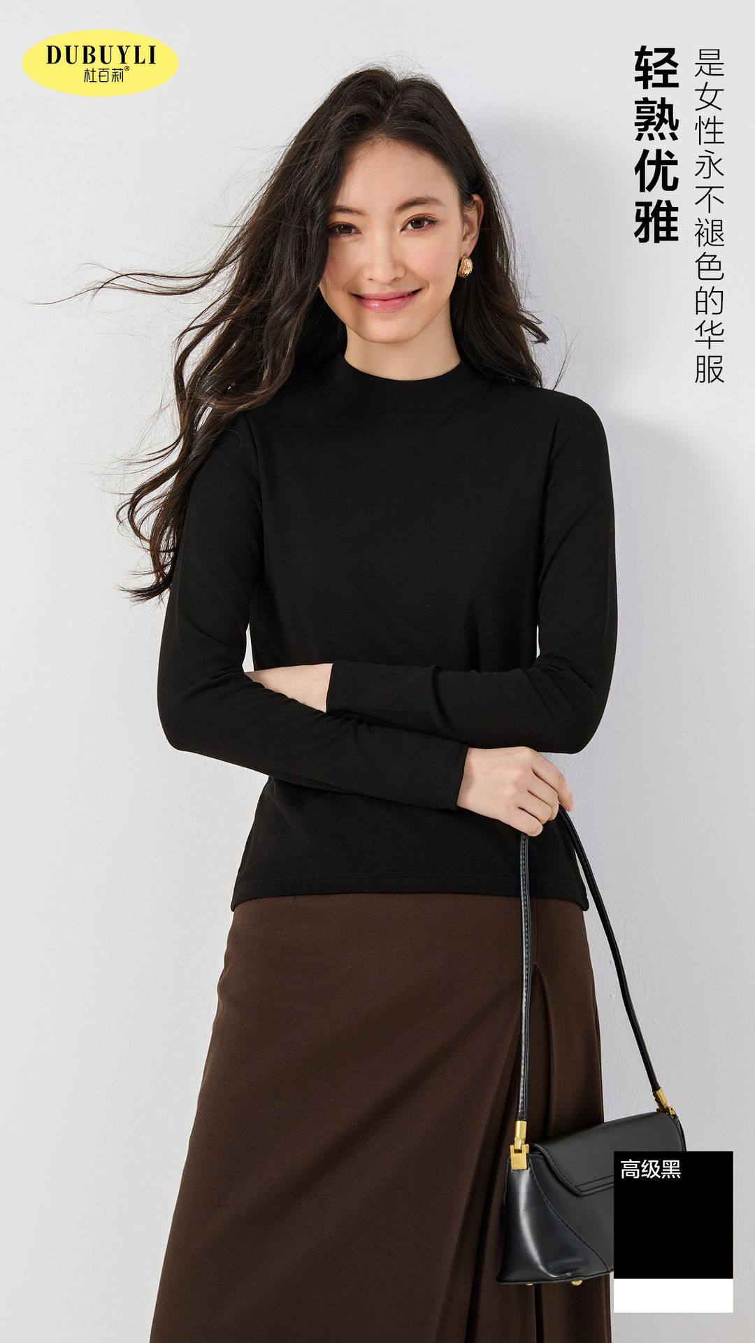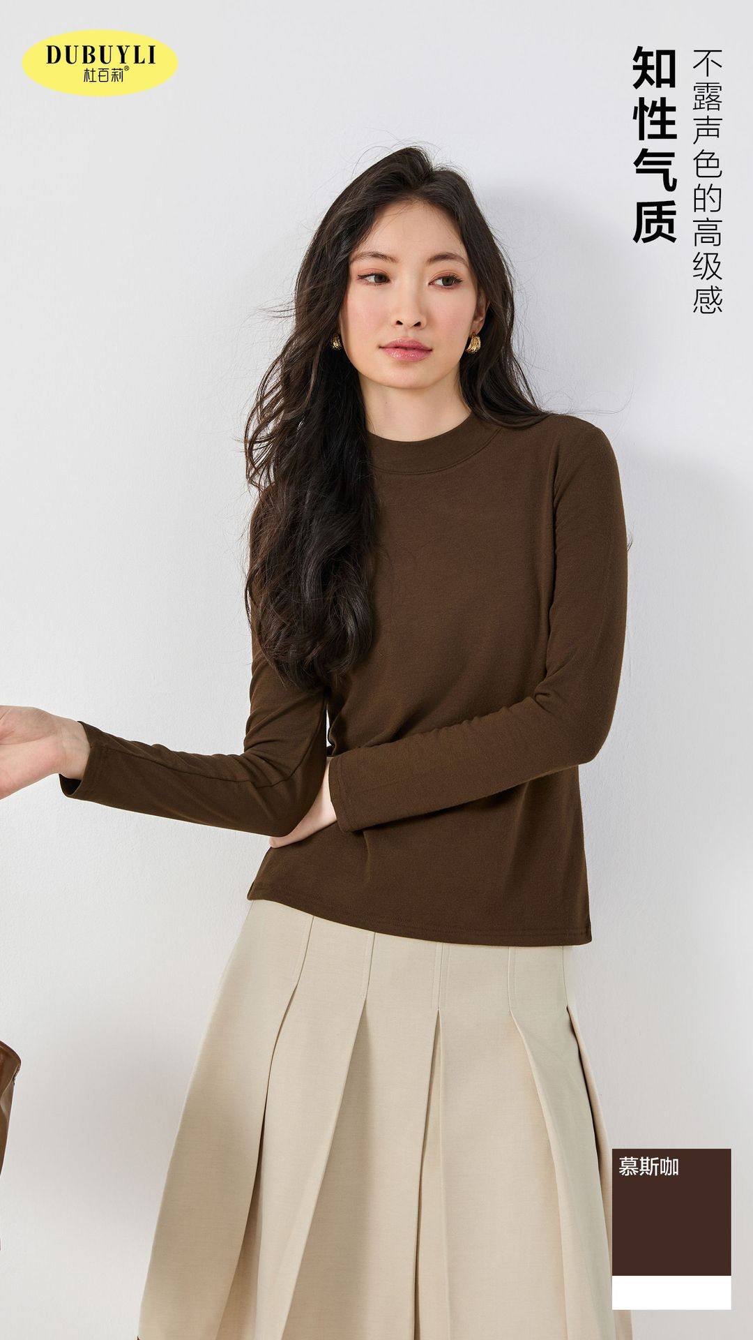 秋冬小立领打底衫女内搭宽松圆领纯色上衣百搭修身显瘦针织衫女
