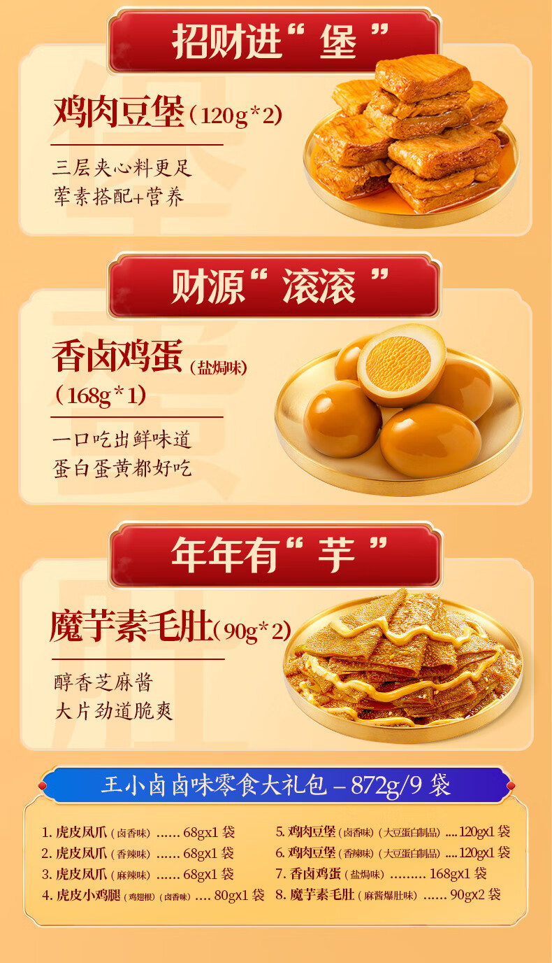 【分仓直发包邮】王小卤好吃到发财礼盒872g