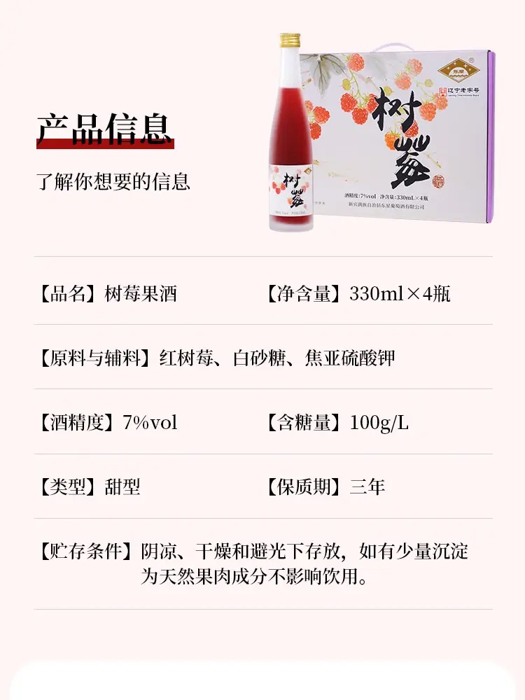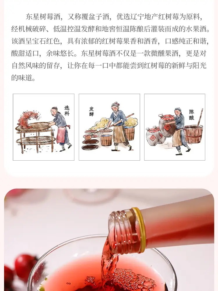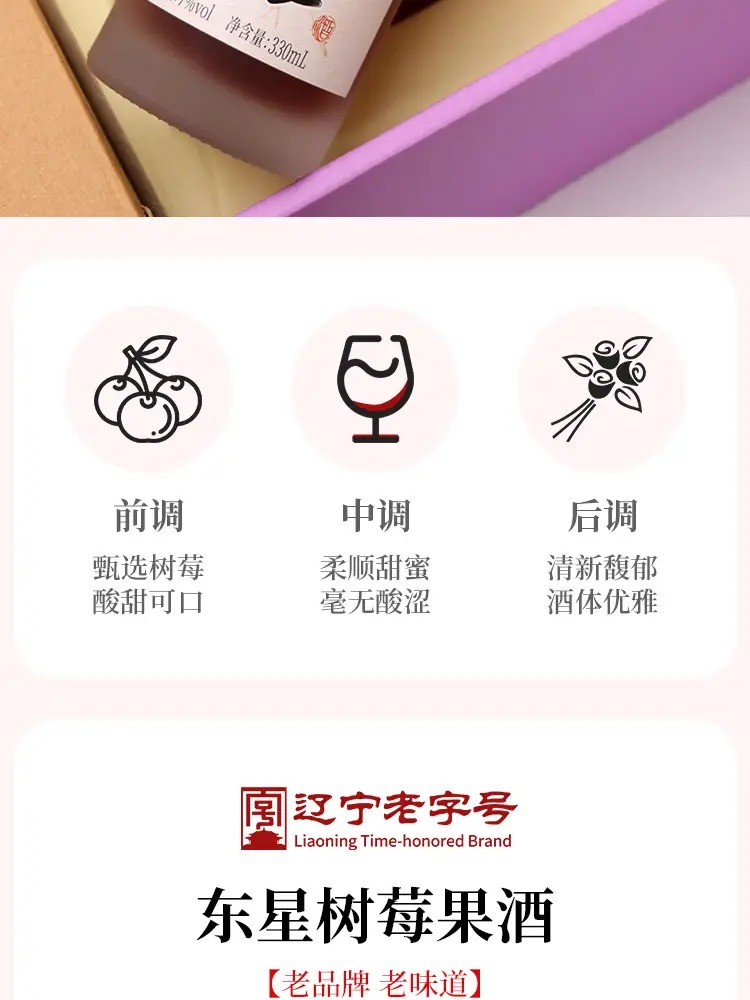 东星树莓酒经典果酒瓶装7度树莓小酒 330ml 沈农食品产业研究院