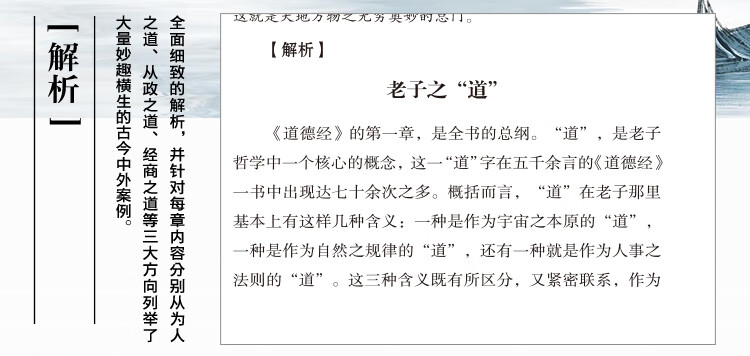 无论是治学修身、处世待人,还是经商置业、从政为民;无论是王公贵族、富商大贾,还是贩夫走卒、平民百姓,总能在《道德经》中,找到自己所需要的智慧。