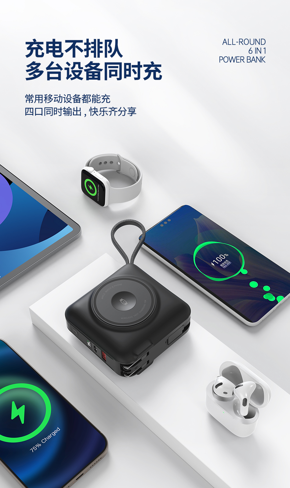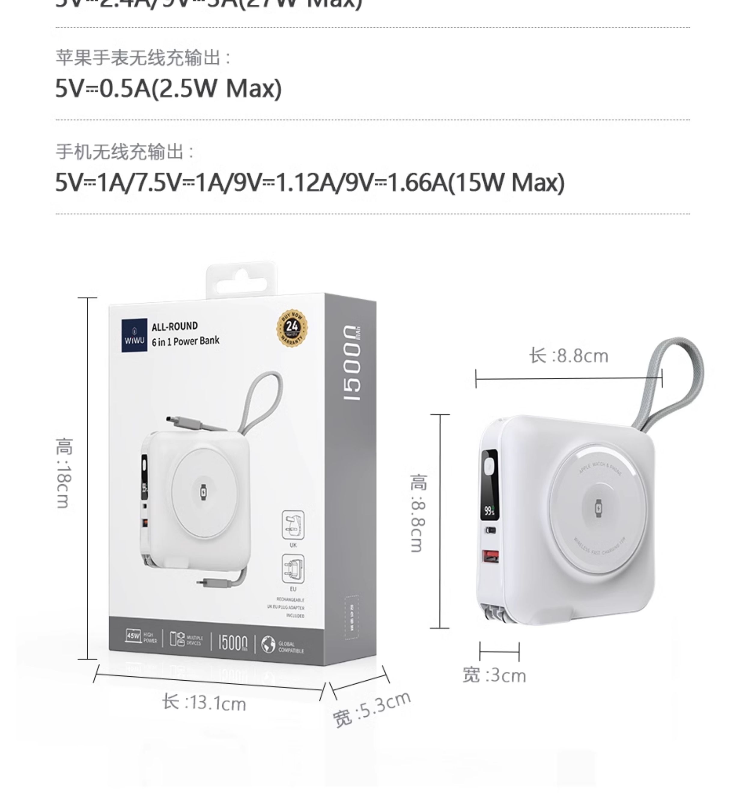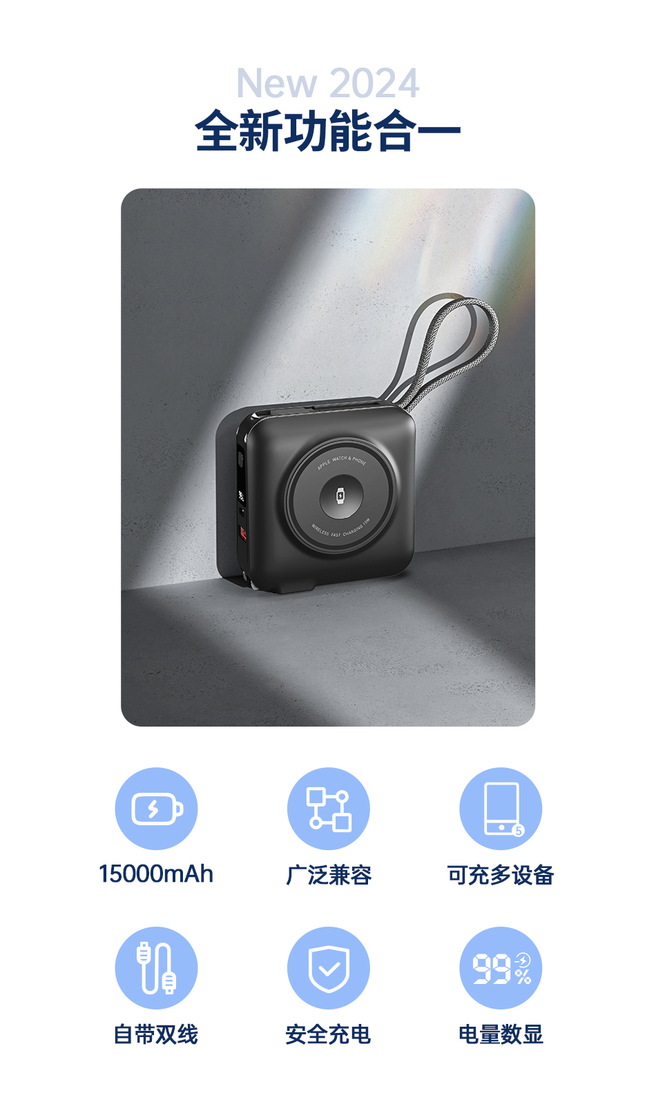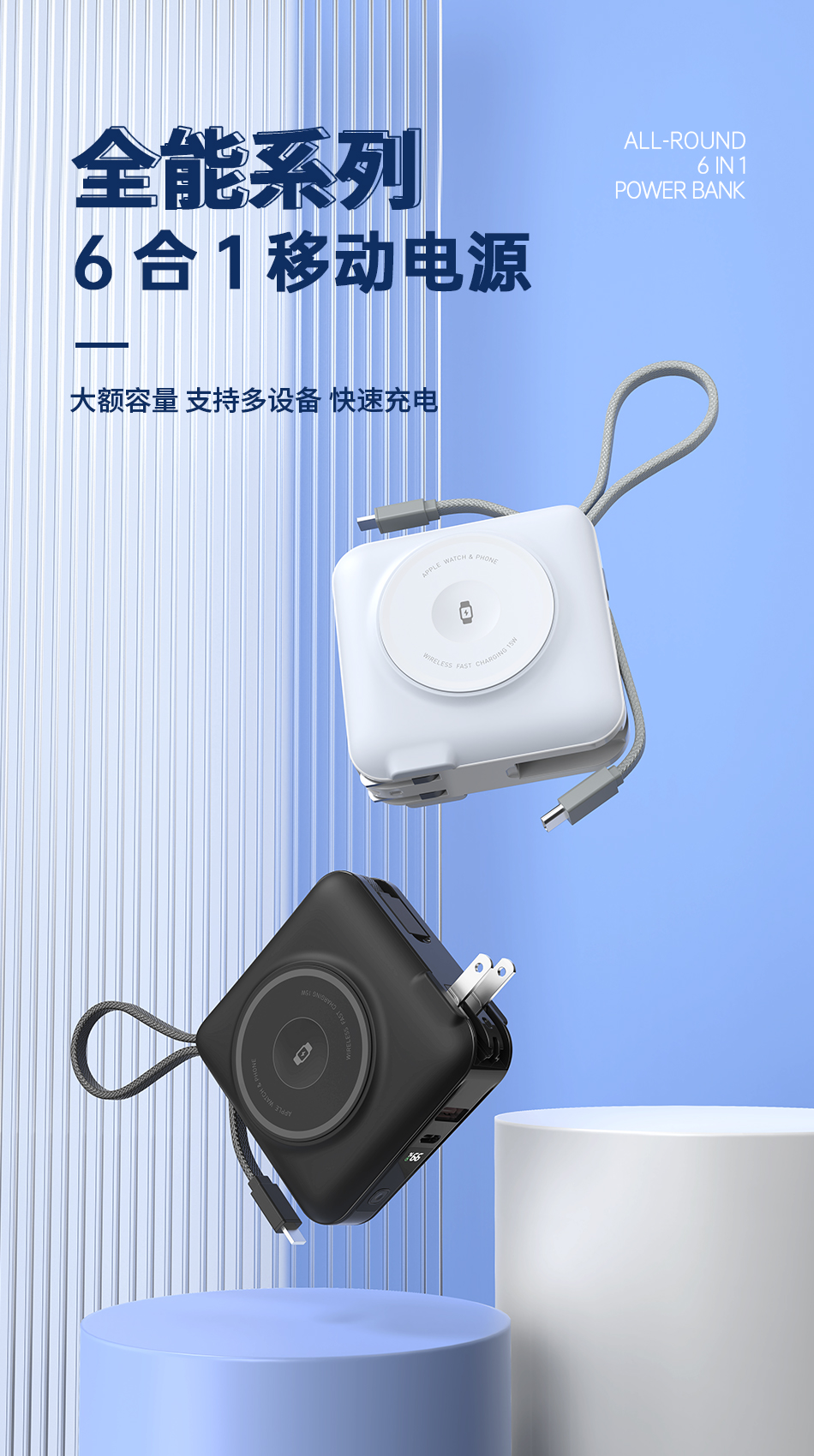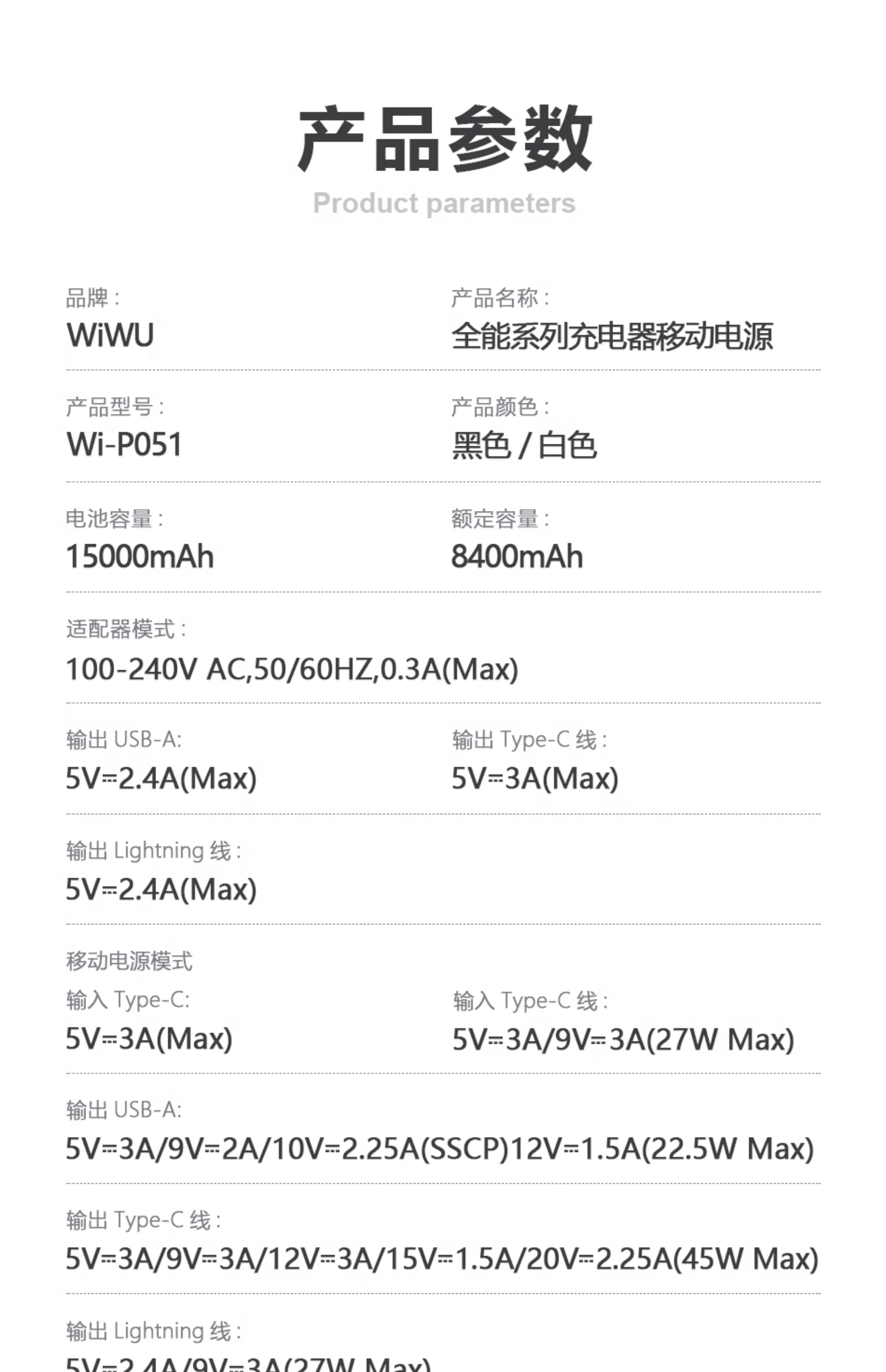 WIWU唯吾充电宝P051自带线AC插头45W快充磁吸多合一可携带上飞机