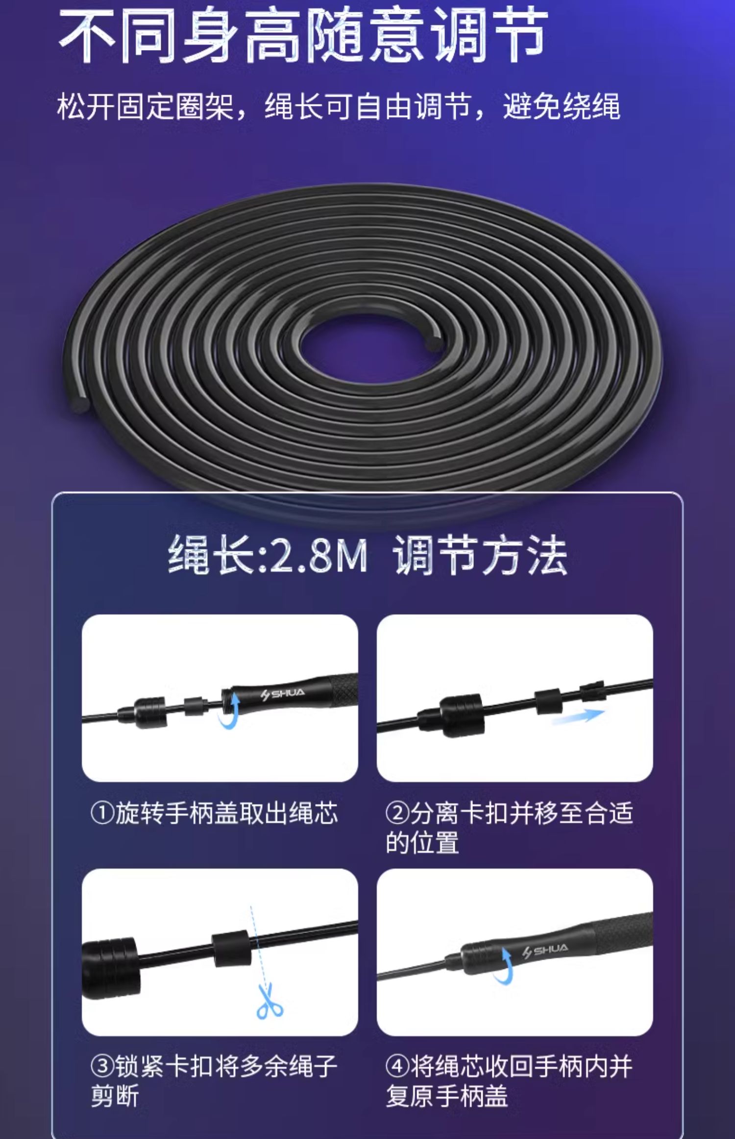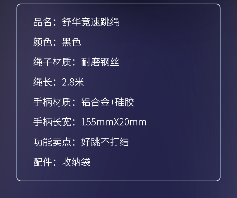 舒华竞速跳绳专业绳减脂专用小学中考专用健身运动钢丝有绳健身绳