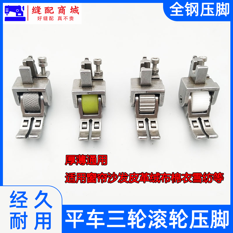电脑平车厚料滚轮压脚平缝机皮革棉衣窗帘3个轮子压脚缝纫机配件
