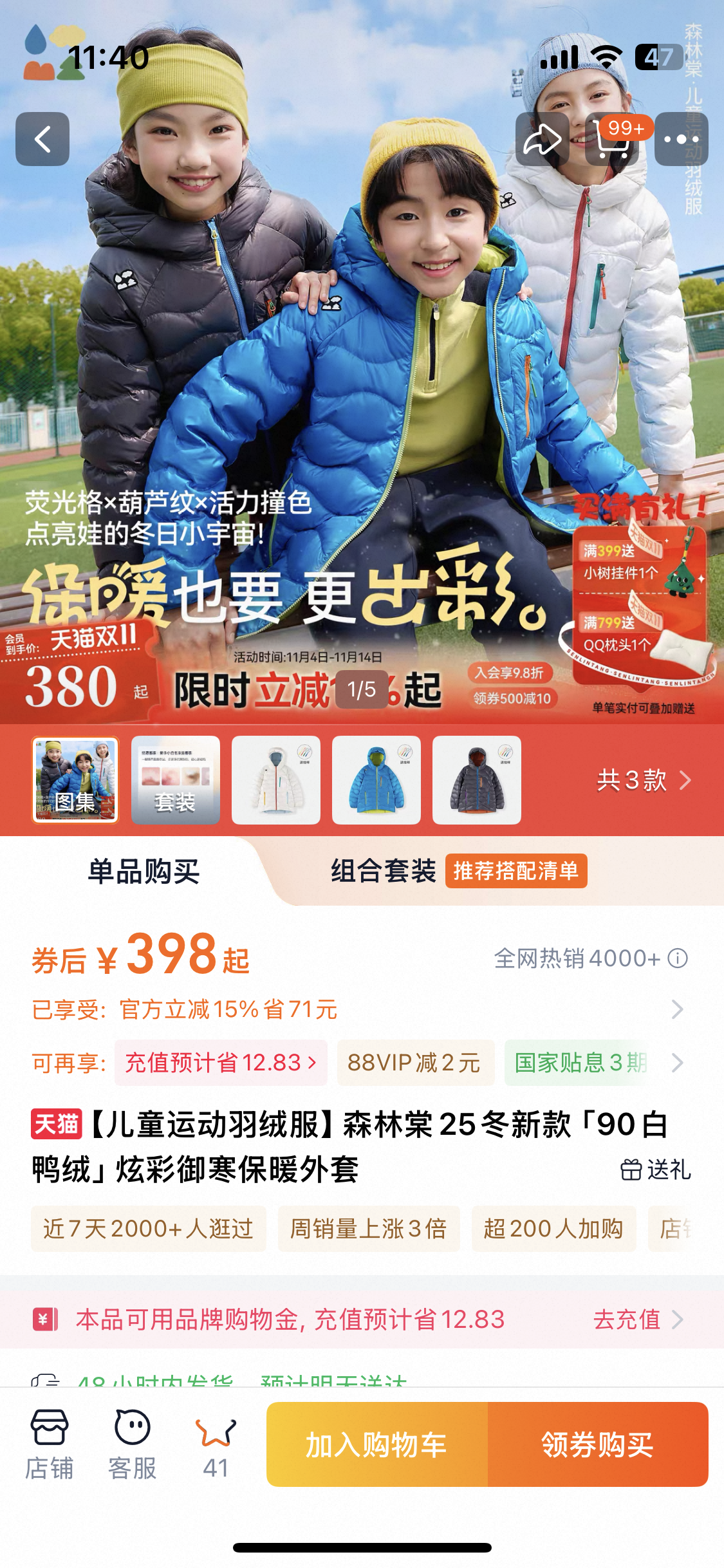 老米优品🎈【品牌授权】亲子!《炫彩吐司运动羽绒服》森林棠25冬季!男童女童活力撞色加厚保暖羽绒服80932145