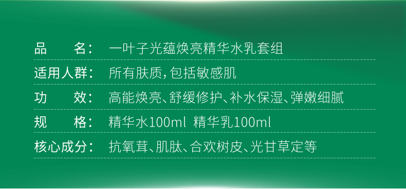 【试用尝鲜装】一叶子光蕴焕亮锁光水30ML+锁光乳30ML