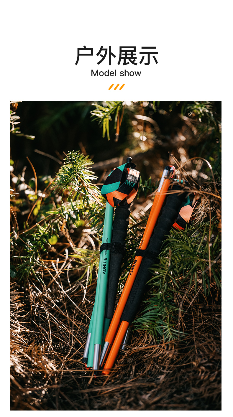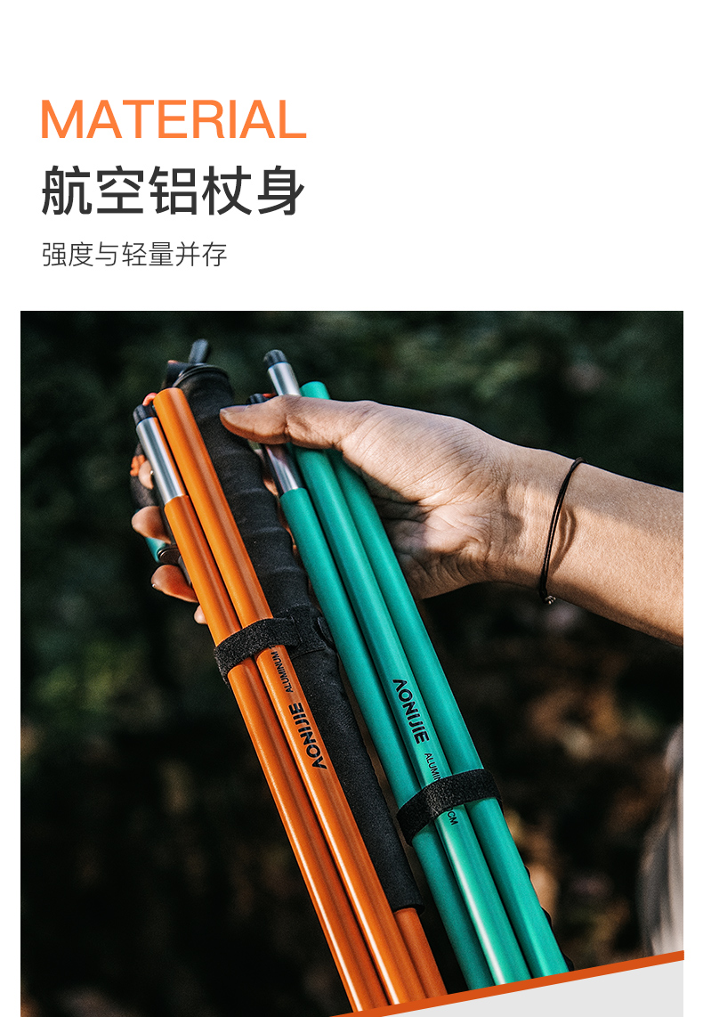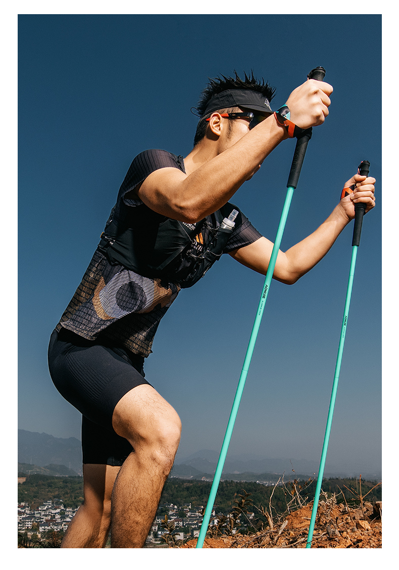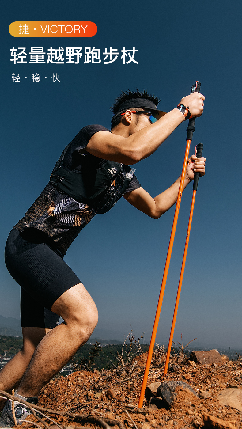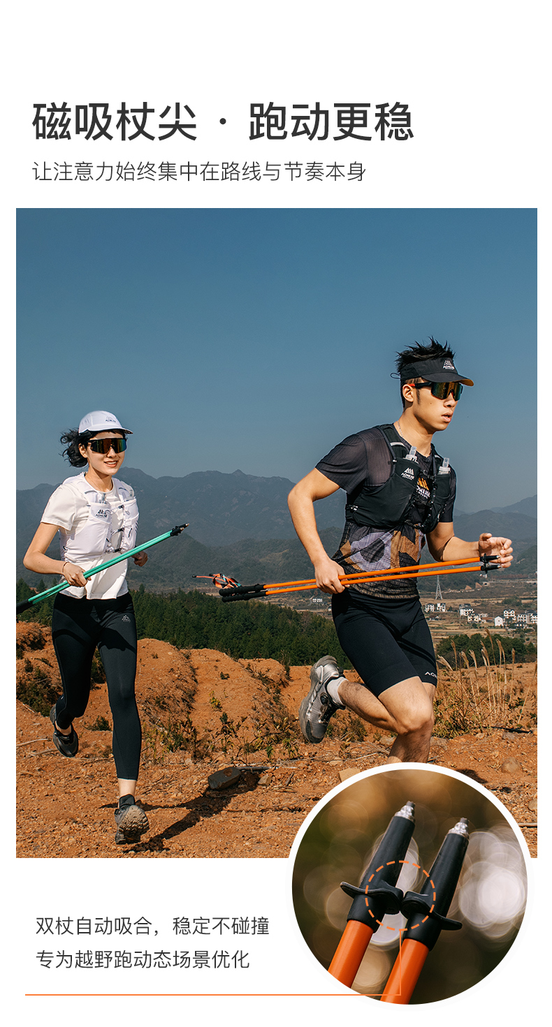 奥尼捷越野跑步登山杖铝合金跑步杖徒步杖纯色轻量化磁吸杖尖越野跑步杖 一对装