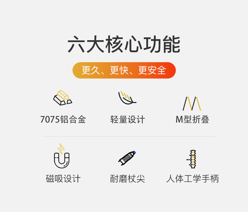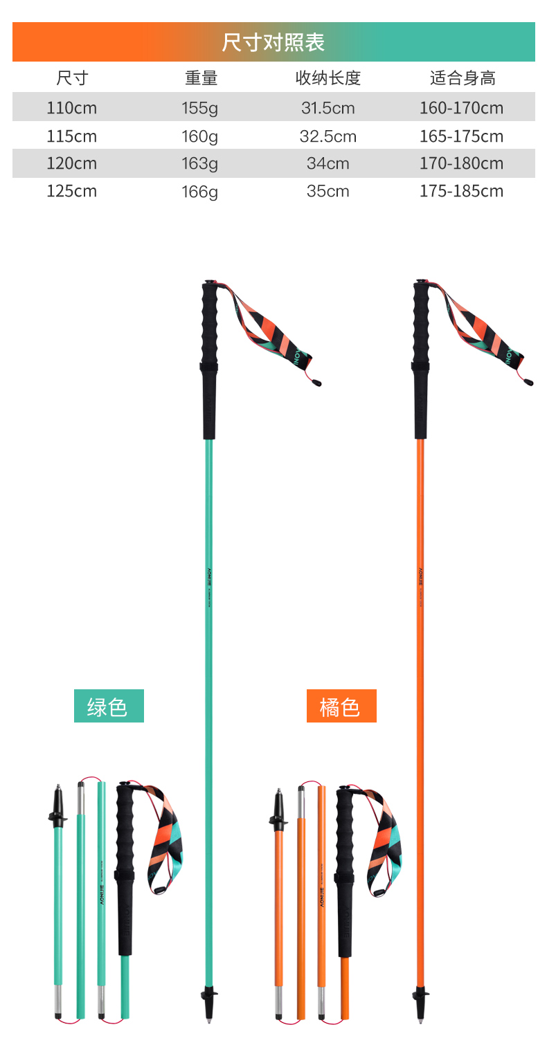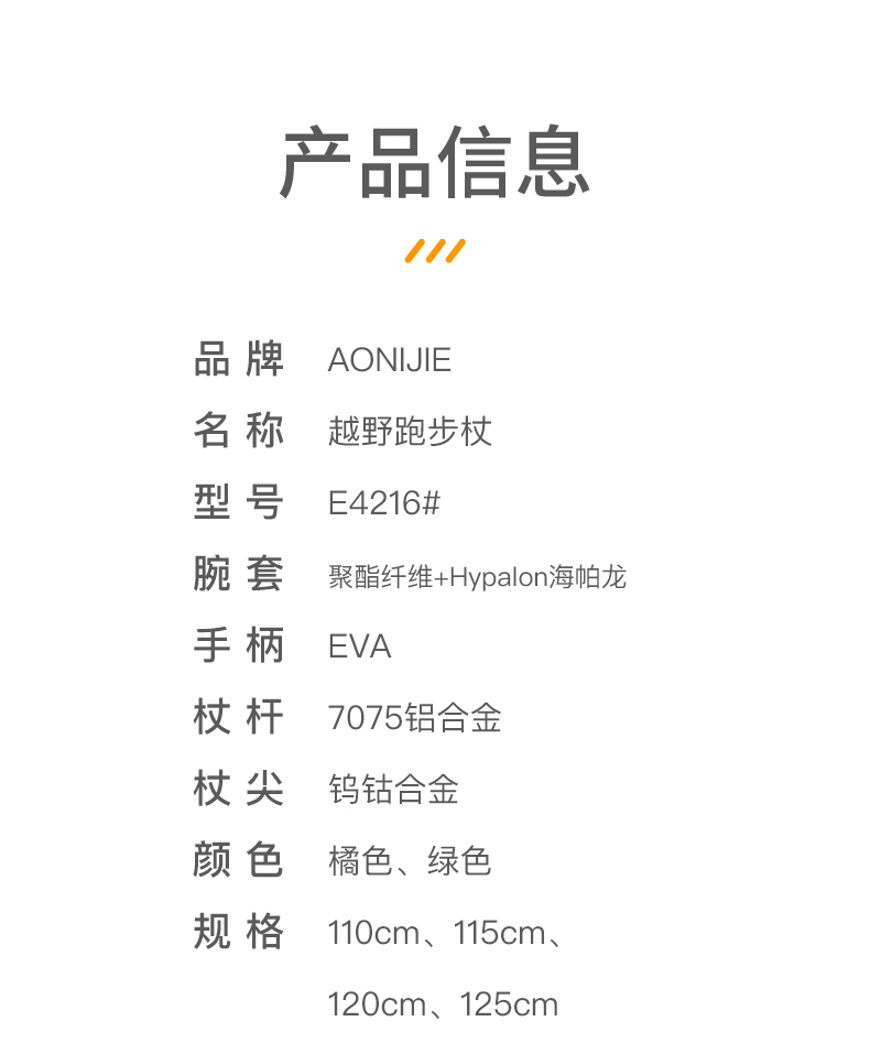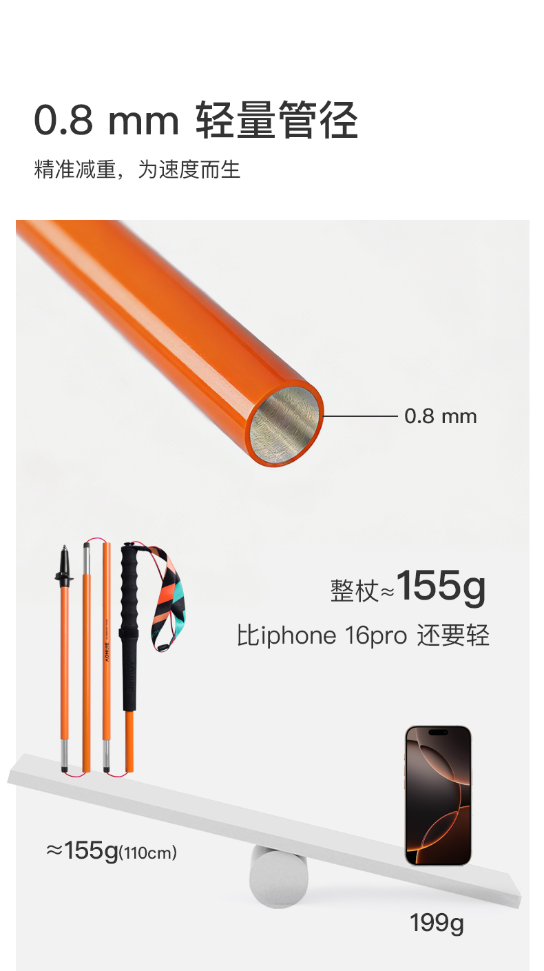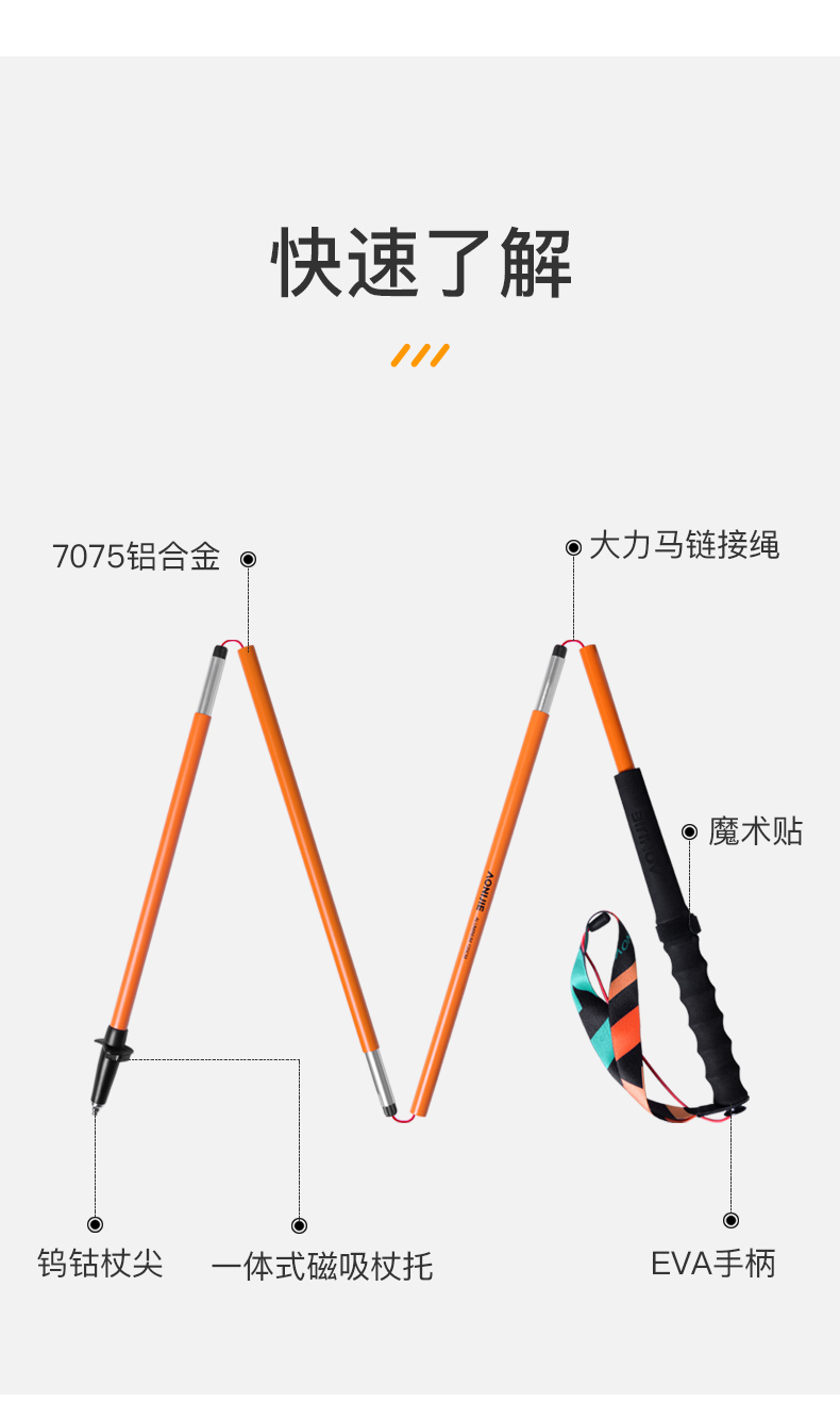 奥尼捷越野跑步登山杖铝合金跑步杖徒步杖纯色轻量化磁吸杖尖越野跑步杖 一对装