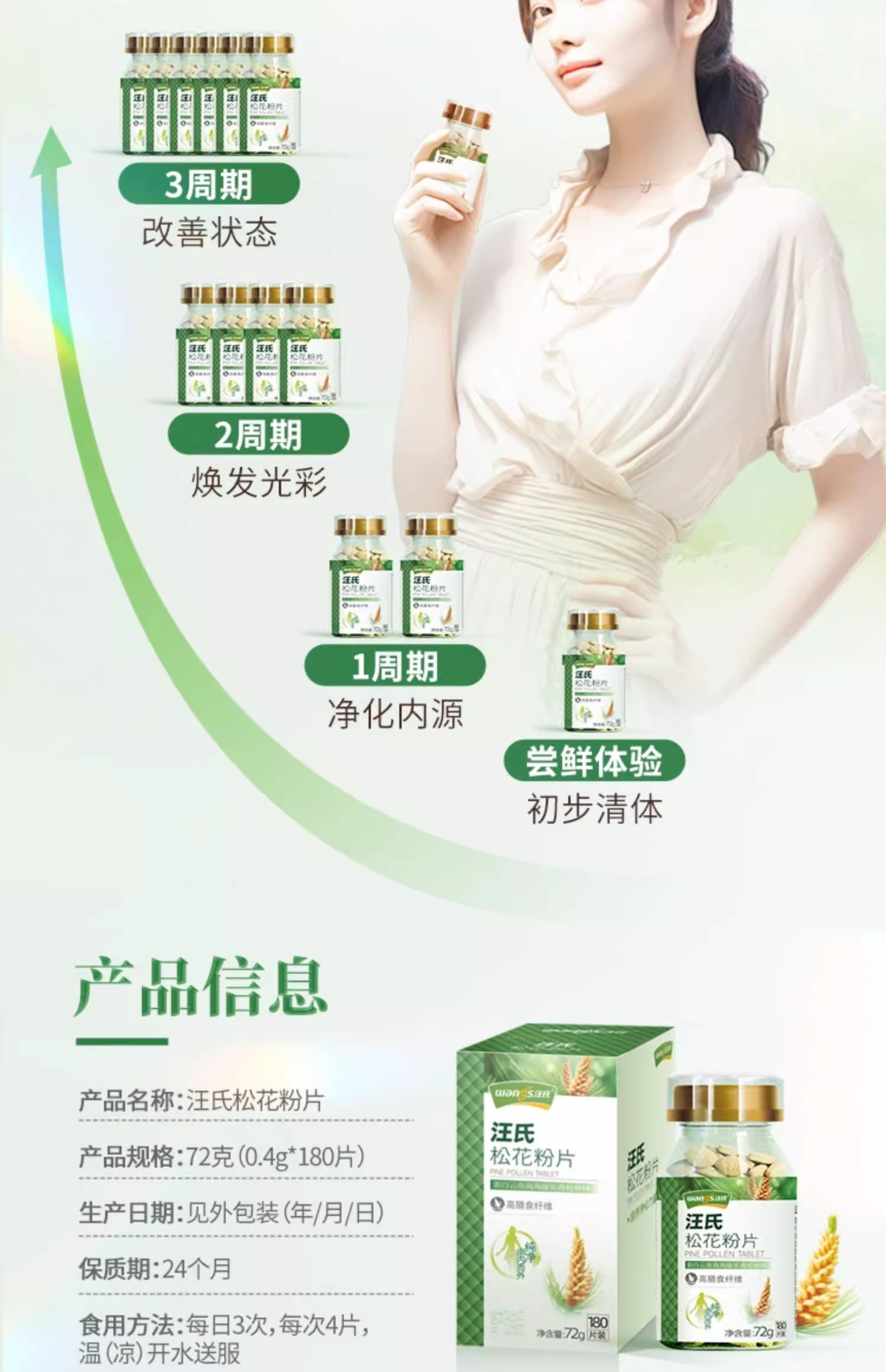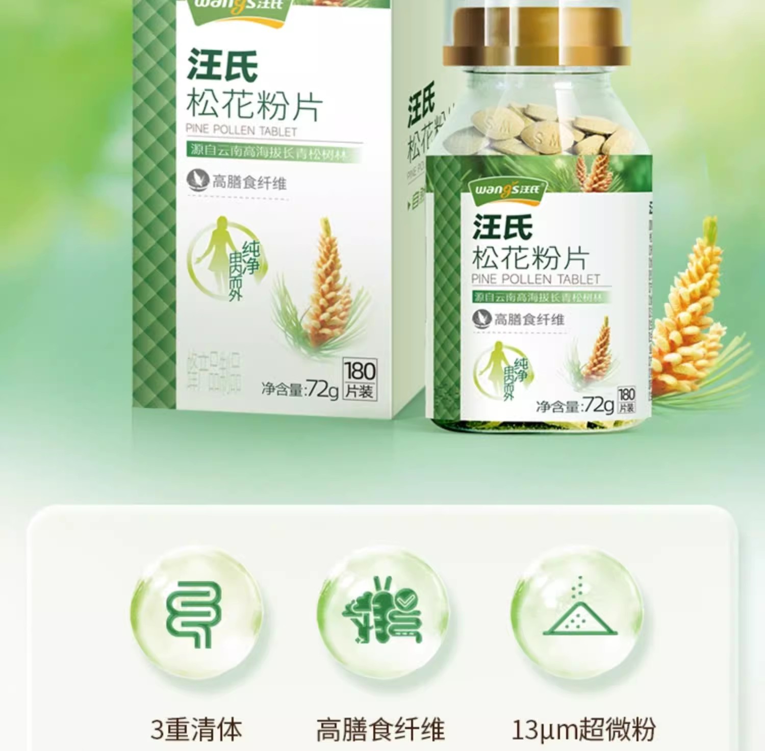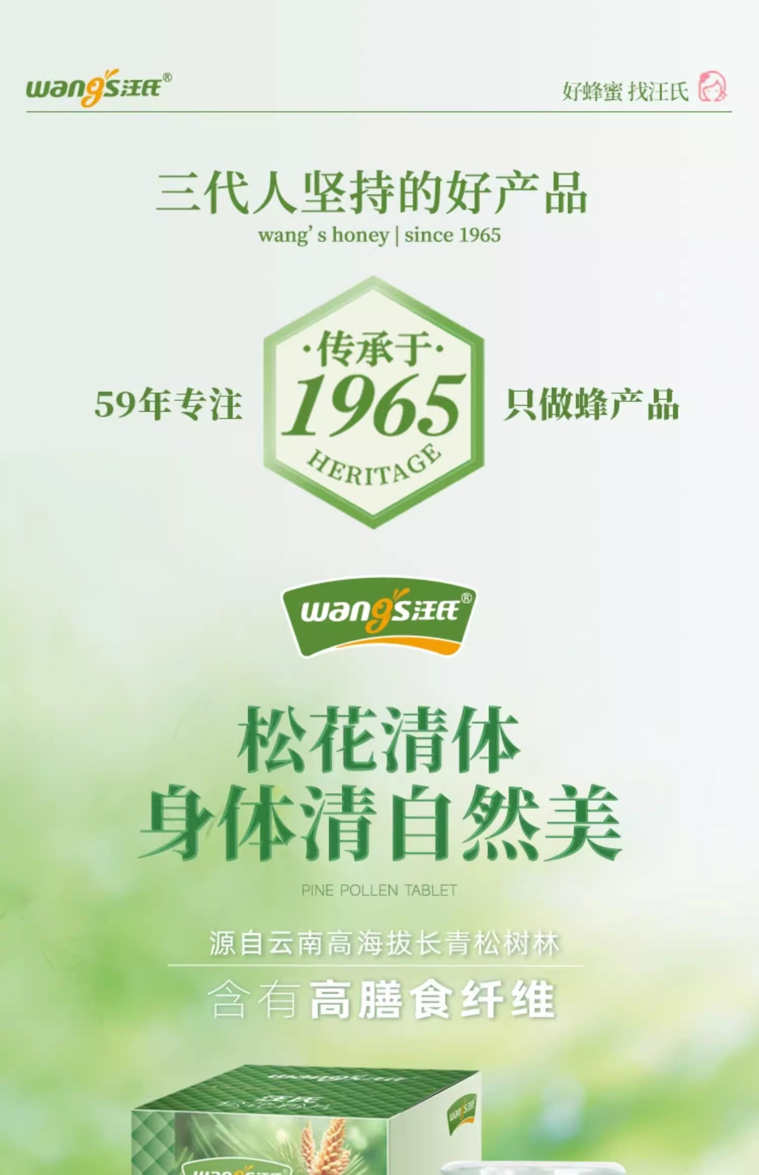 汪氏官方旗舰店破壁松花粉片正品蜂花粉天然正品食用松花粉180片