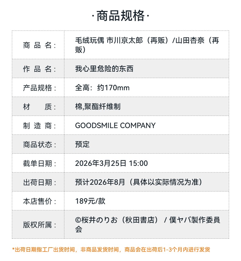 【GSC预售定金】毛绒玩偶 市川京太郎/山田杏奈 我心里危险的东西