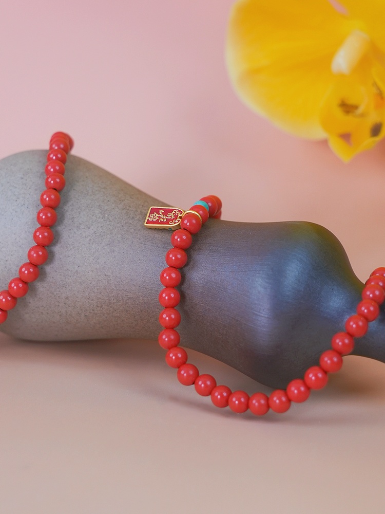 【现货】朱砂项链帝王红砂素面圆珠本命年转运护身福【单珠尺寸4mm】 【一物一证书】