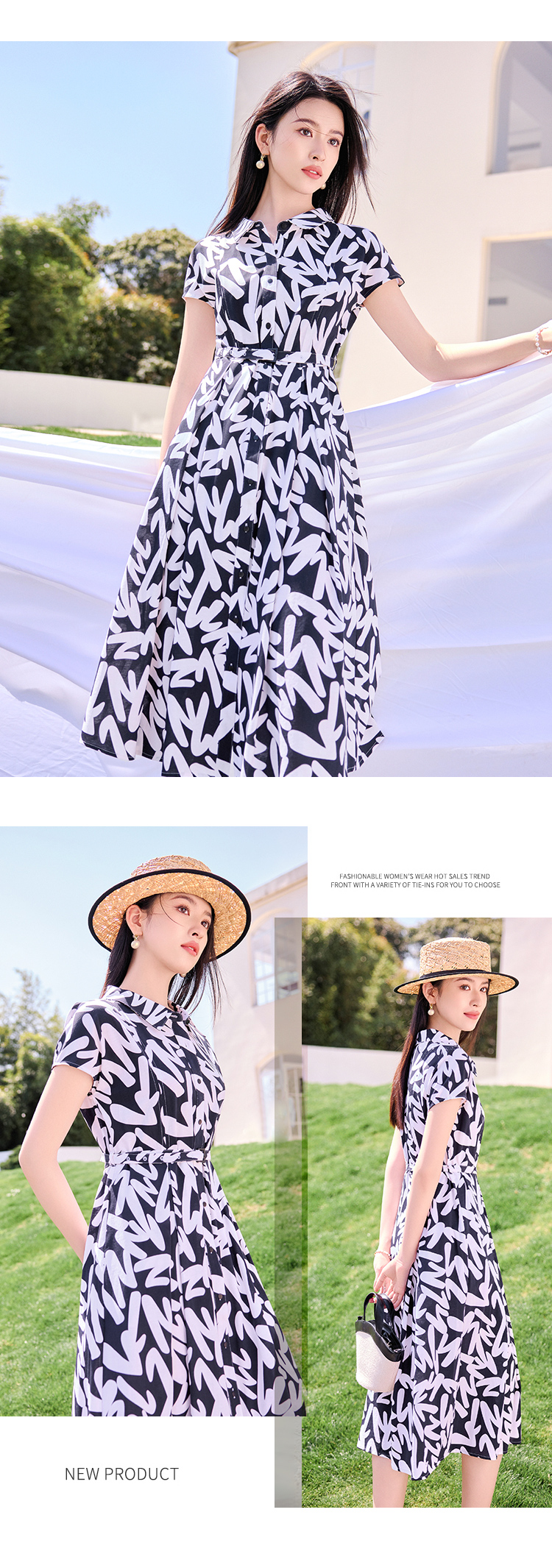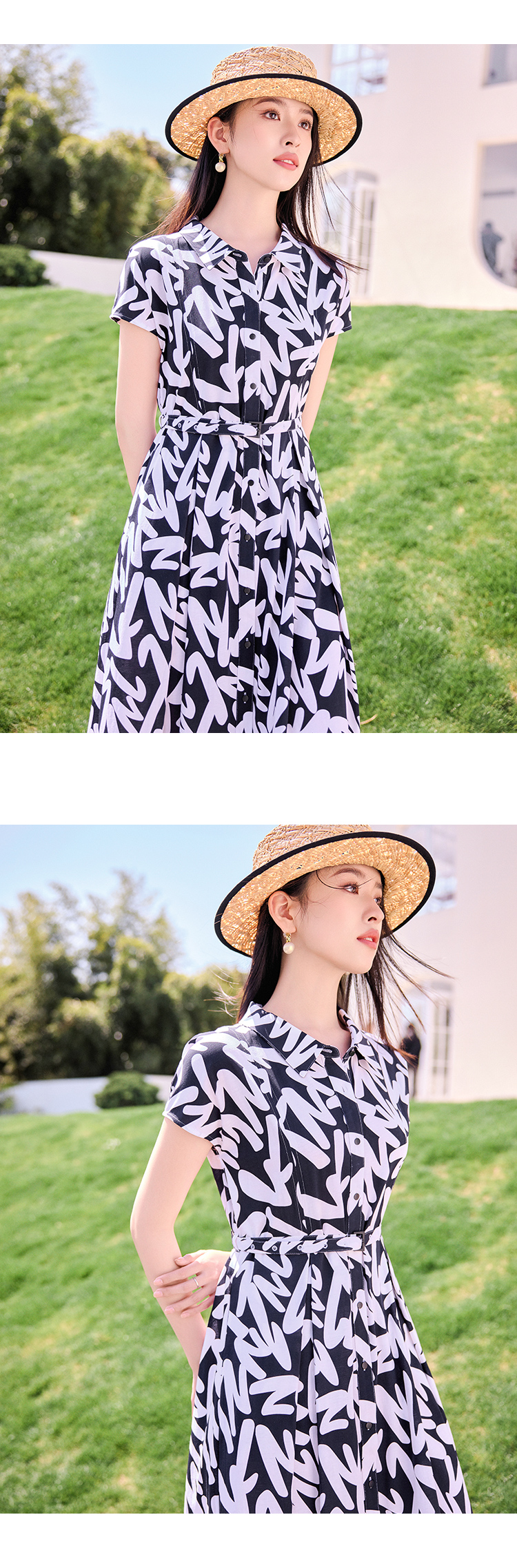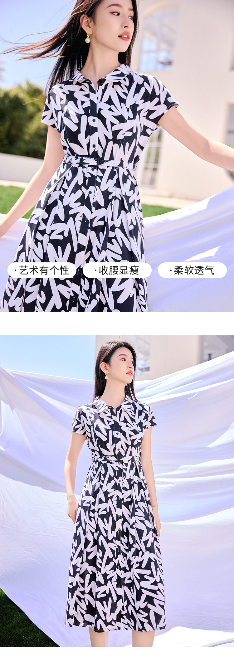 【商场同款】CND4597 “艺术家连衣裙 ”轻薄纯棉 衬衫领几何线条连衣裙 收腰显瘦 中长款了连衣裙