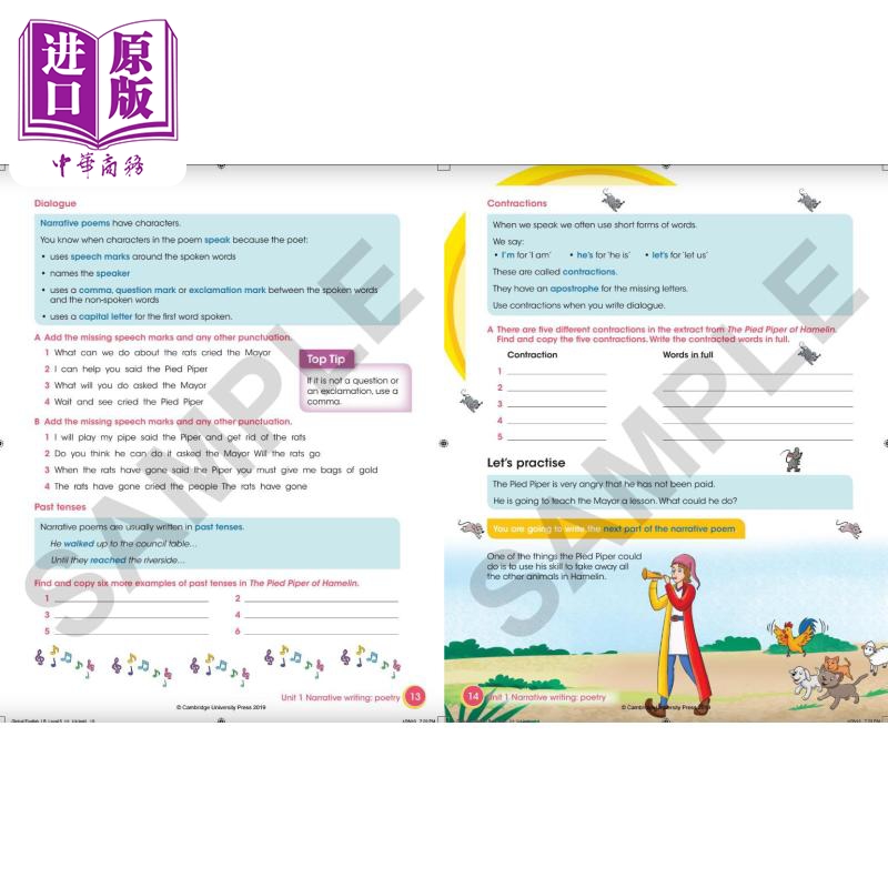 培养学习者在创造性写作和有目的写作方面的技能。引导你的学习者进行创造性写作和有目的的写作。他们将为一位名人写一本传记,并根据《魔笛手》写一首诗,在学习过程中帮助他们提高写作技能。每个单元侧重于不同的文本类型,如对话、叙述、报告或指示。每一章的示范文本都向学习者展示了每种写作类型的好例子,并提供了具体的活动来帮助他们练习语法。计划工具和延伸写作任务培养学习者的基本技能,包括编辑、检查、计划和创造性思维。