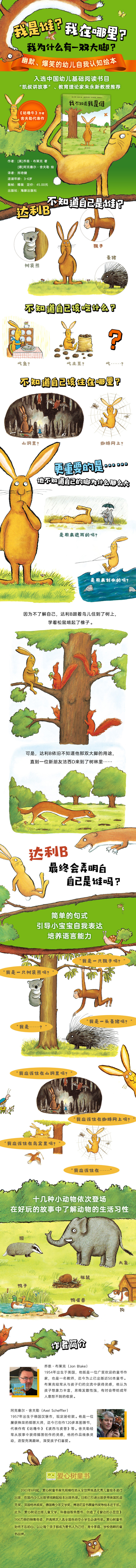 这是我的首部绘本作品,找到一位合适的作者来创作这个故事花了很多功夫。对于一个职业生涯刚刚起步的插画作者而言,一只有着自我认知危机的兔子似乎是一个***好的题材。我的绘画风格***简单,在图画的细节上我通常不会花太多时间。这本书已经被翻译成好几种语言在许多地区出版,这是我创作之路上一个***好的开端。 ——阿克塞尔·舍夫勒