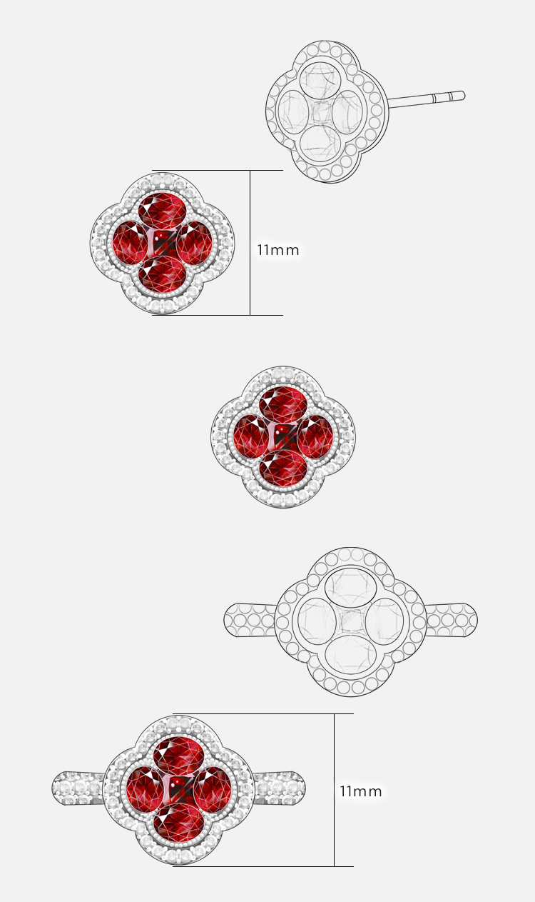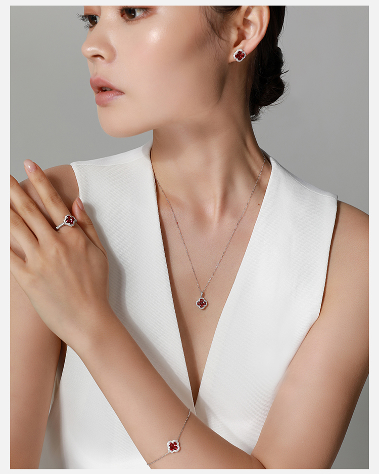 【Lucky】JULEE JULEE茱俪珠宝 18K白金红宝石钻石手链耳饰戒指项链套装
