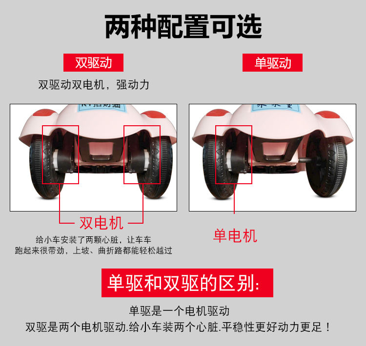 儿童摩托车三轮车遥控双驱小孩玩具车可坐人充电动车2-6宝