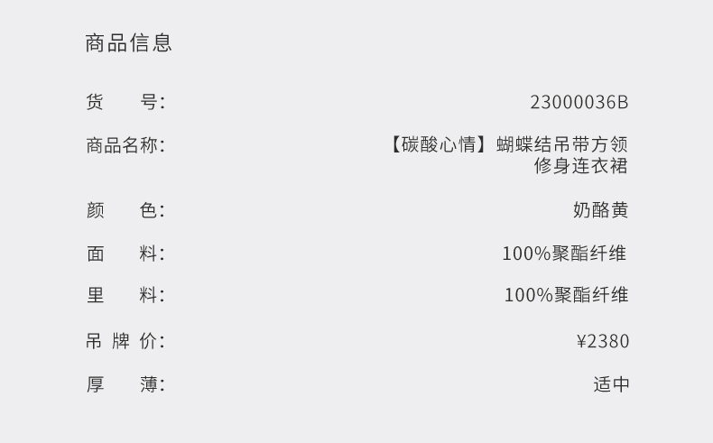 【碳酸心情】蝴蝶结吊带方领修身连衣裙/23000036B